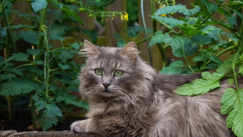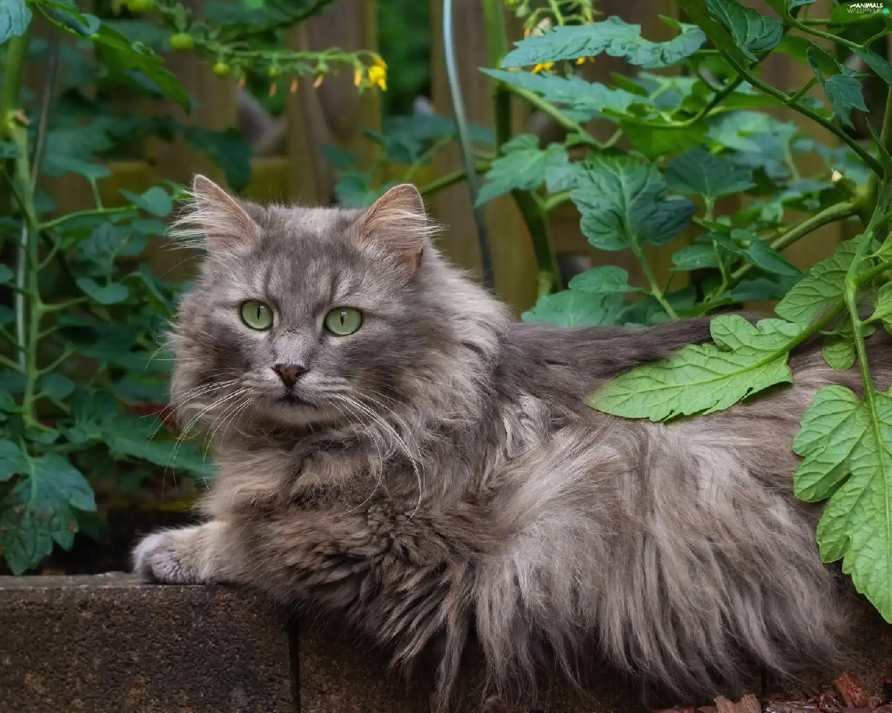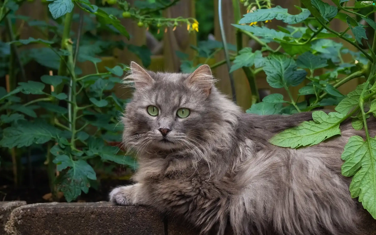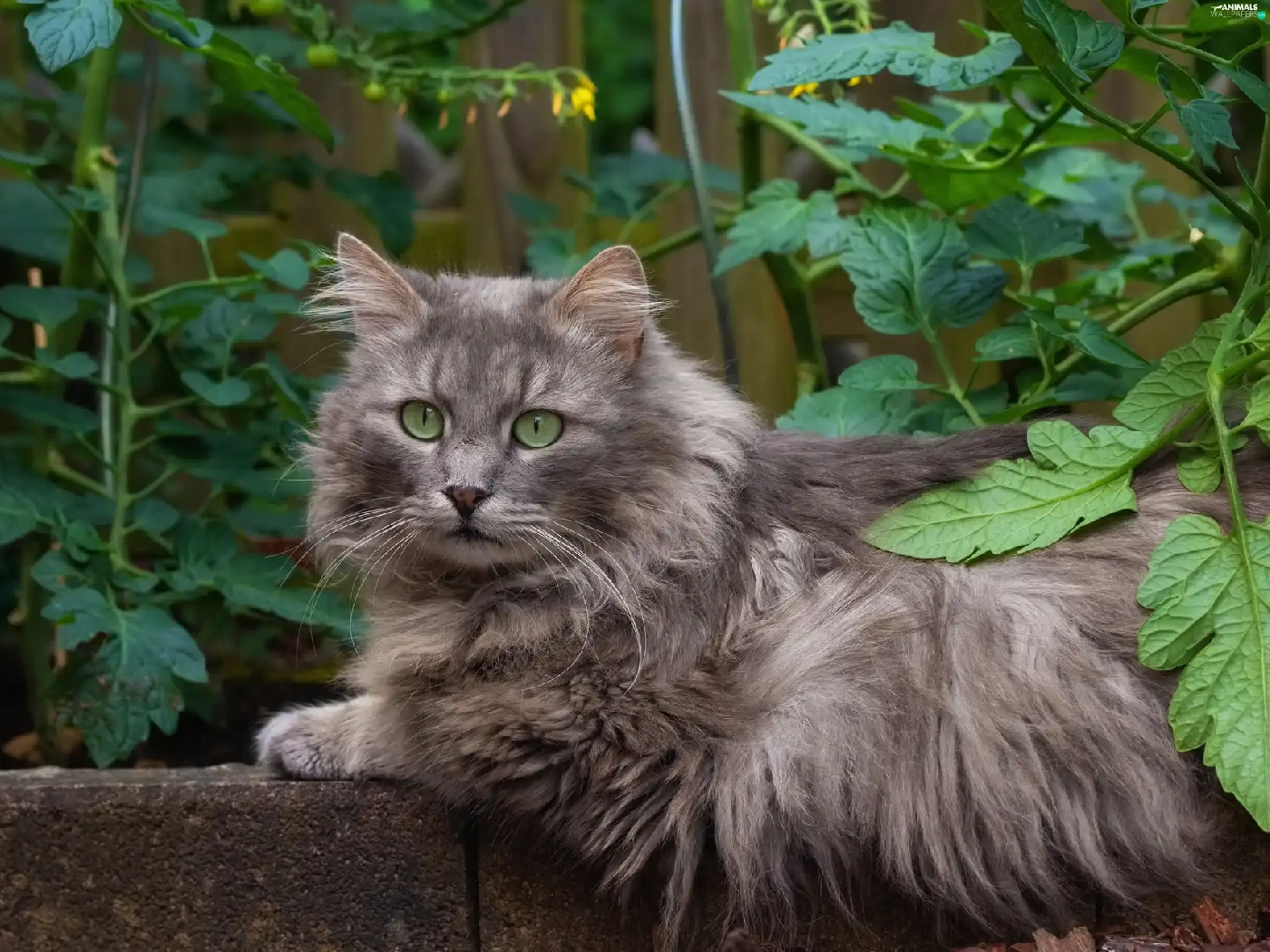 cat, Gray, Eyes, ledge, green ones, Longhaired