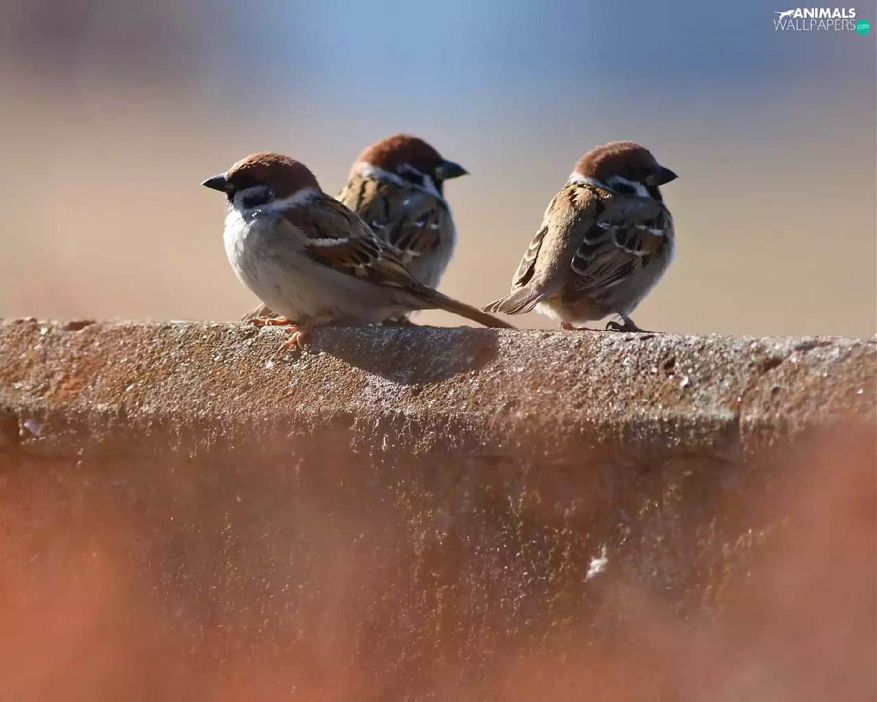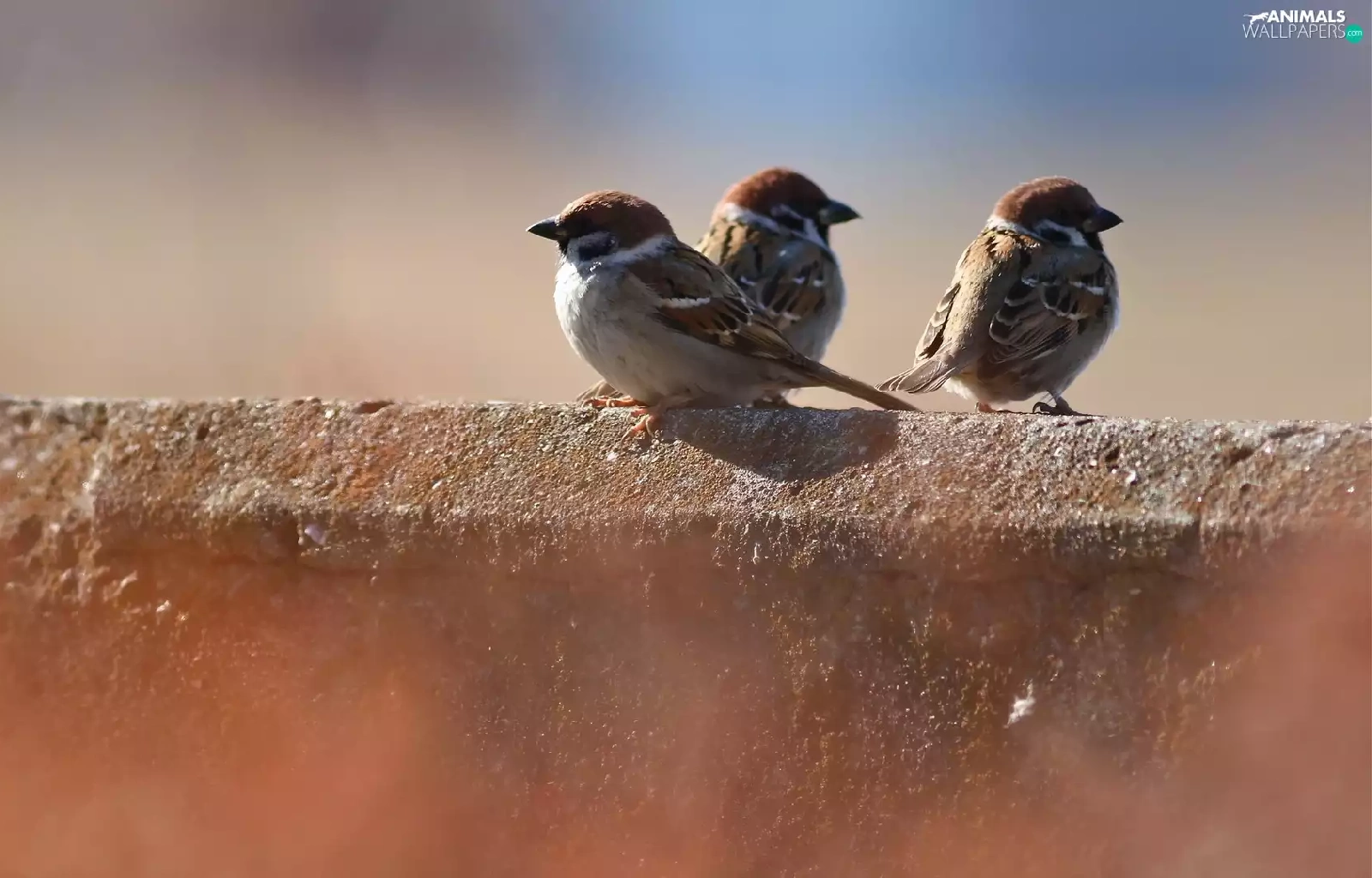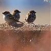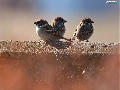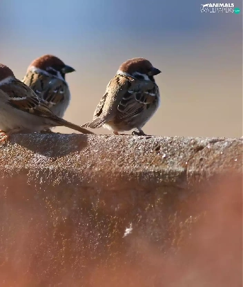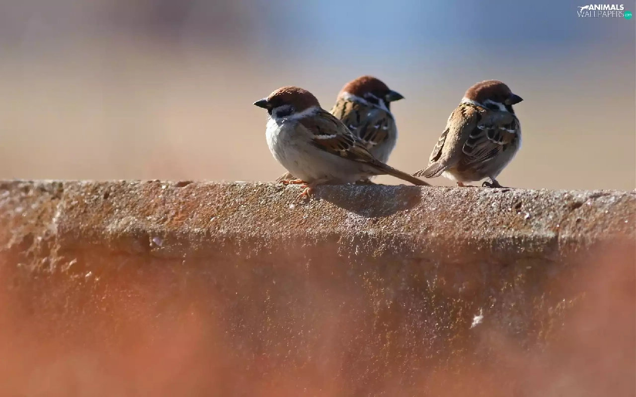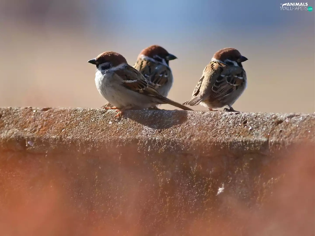 ledge, Three, sparrows