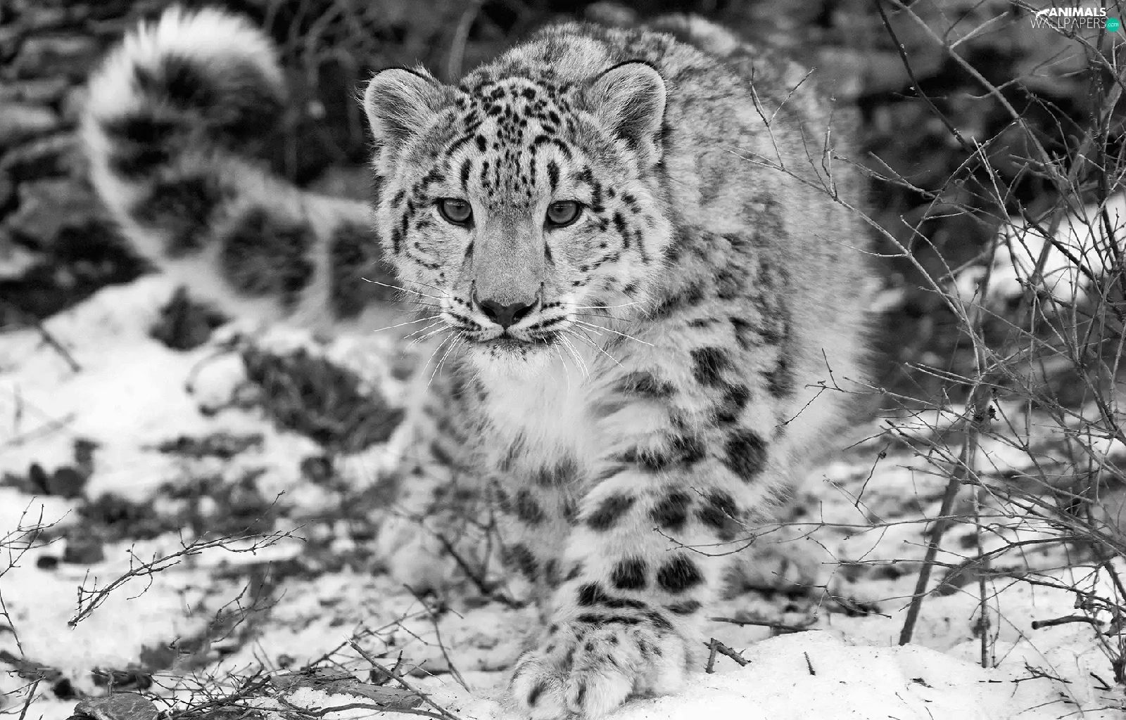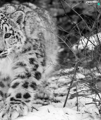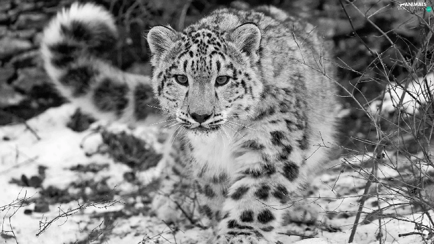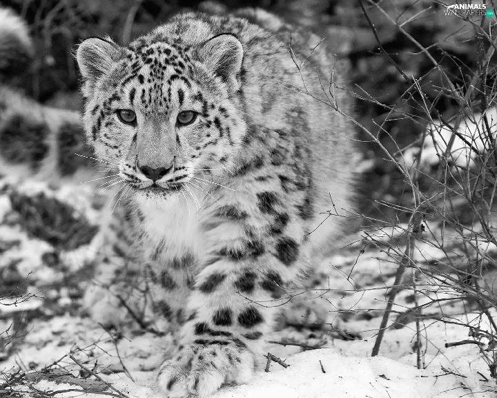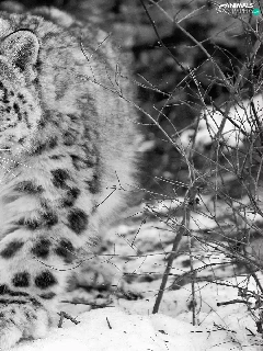 snow leopard, Black, White, winter