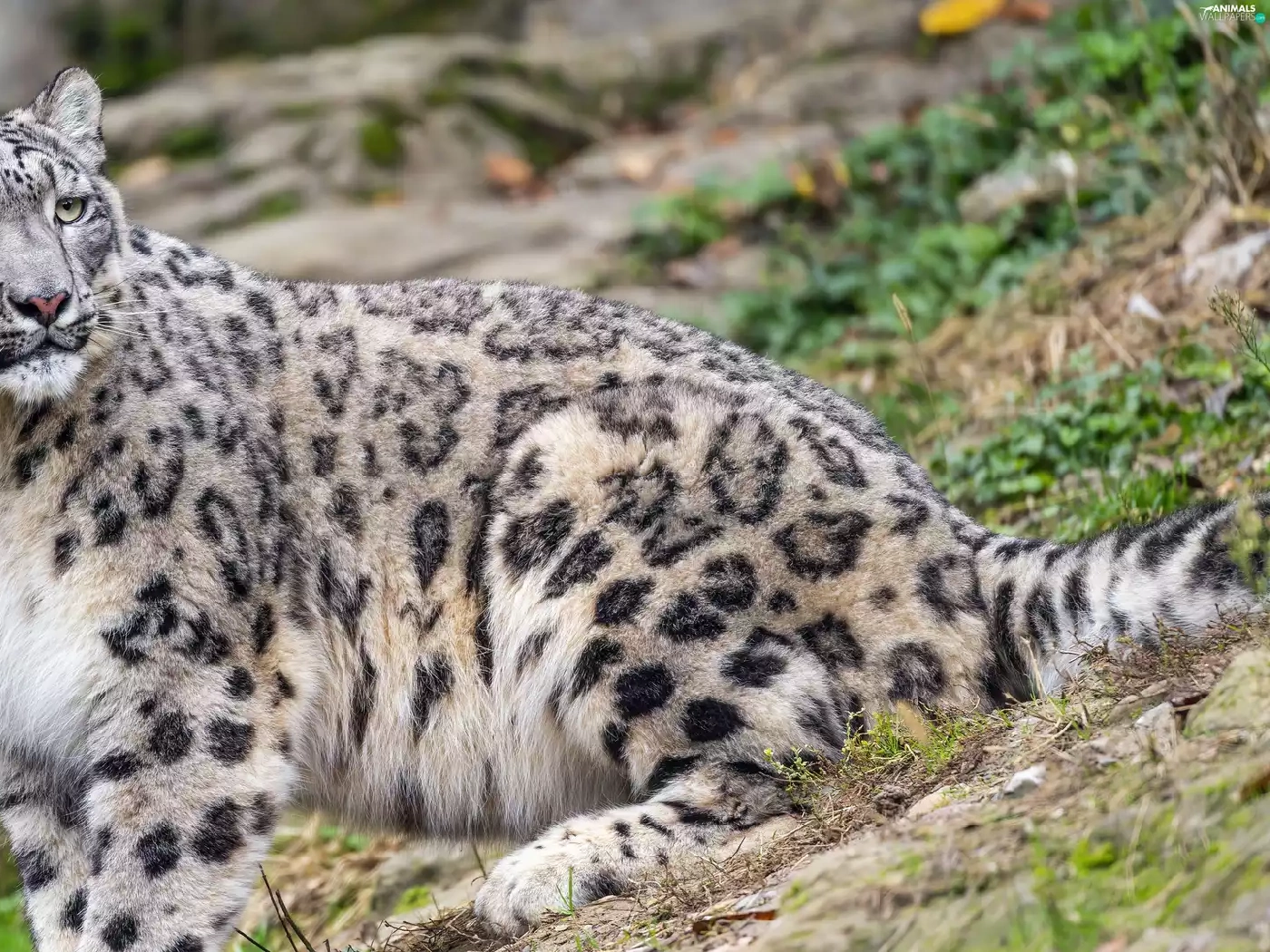 Hill-side, snow leopard, The look