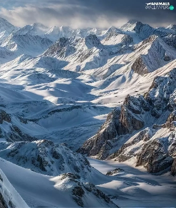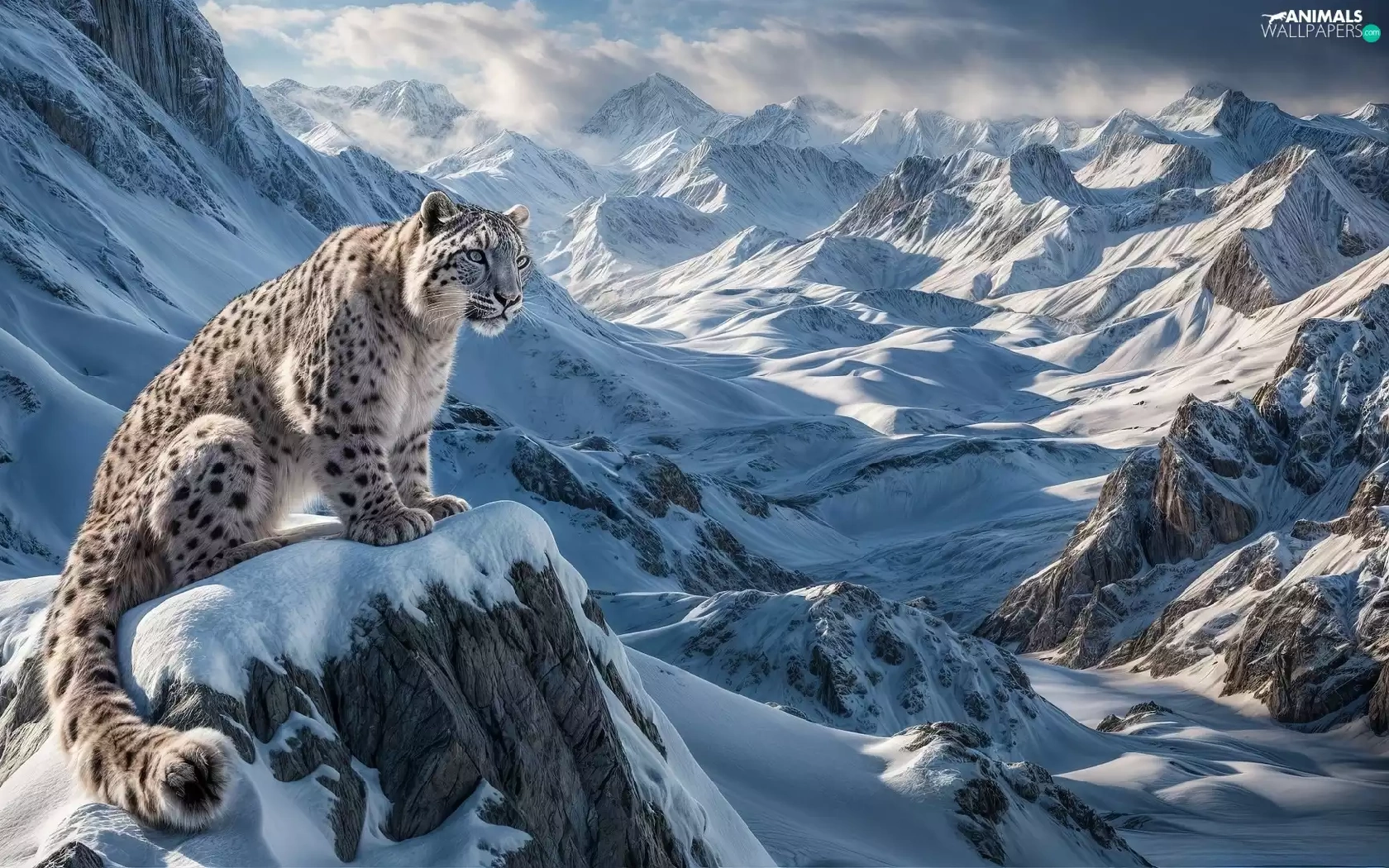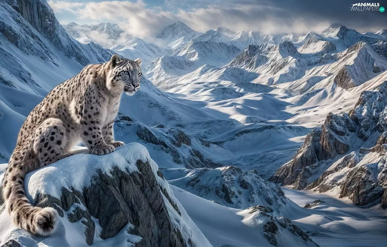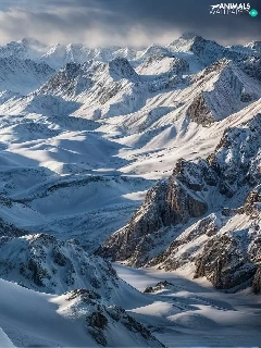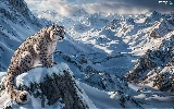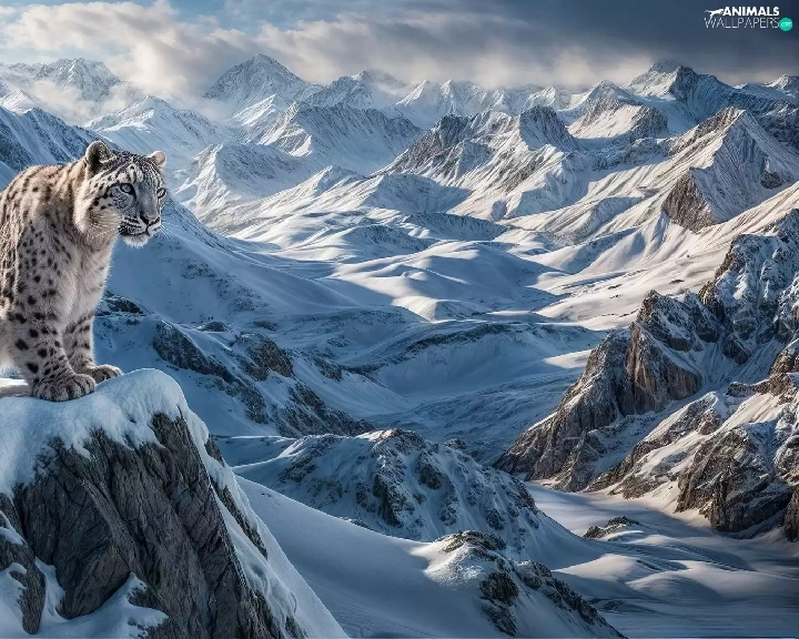 snow leopard, Mountains, winter, snow