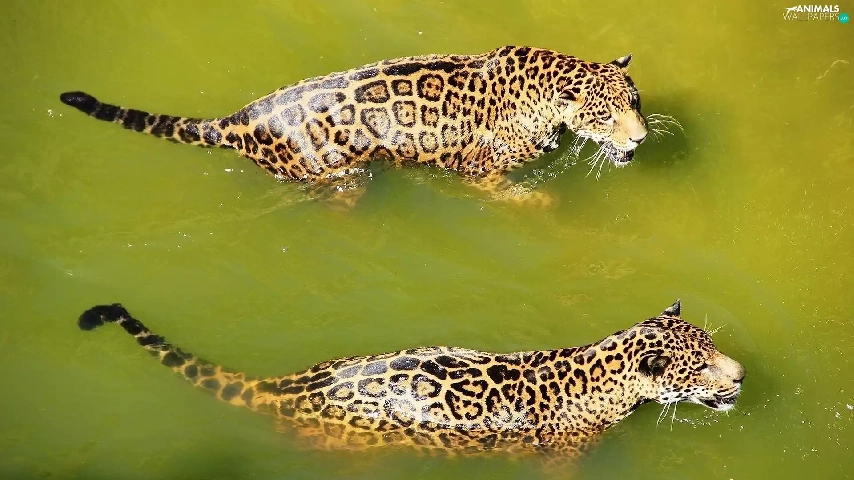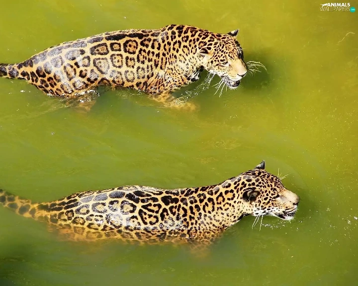 water, Two cars, Leopard