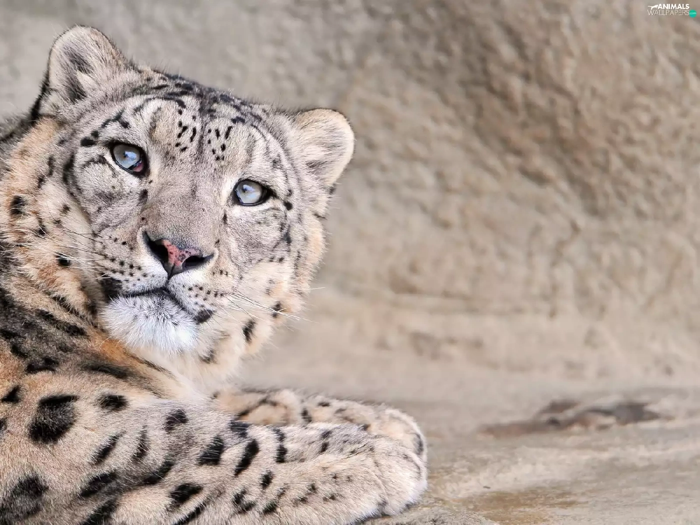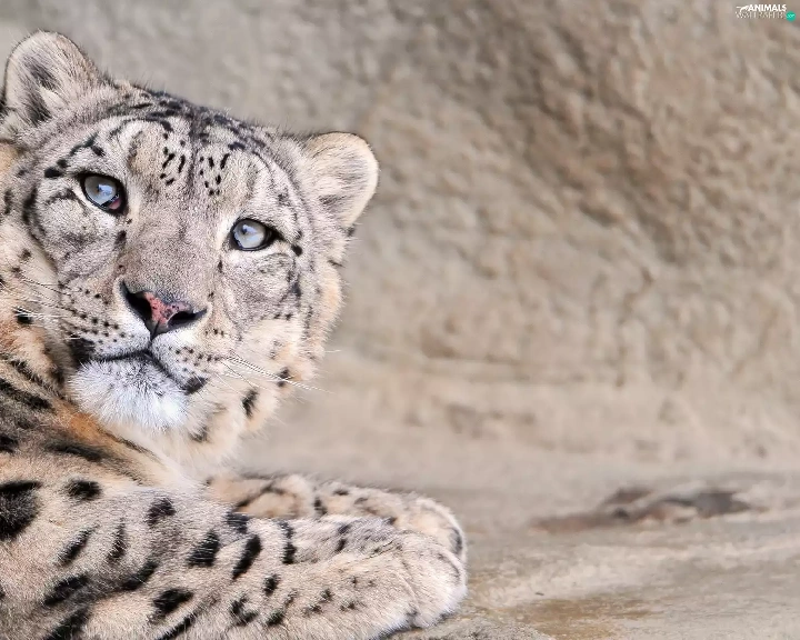 snow leopard, wild, cat, head