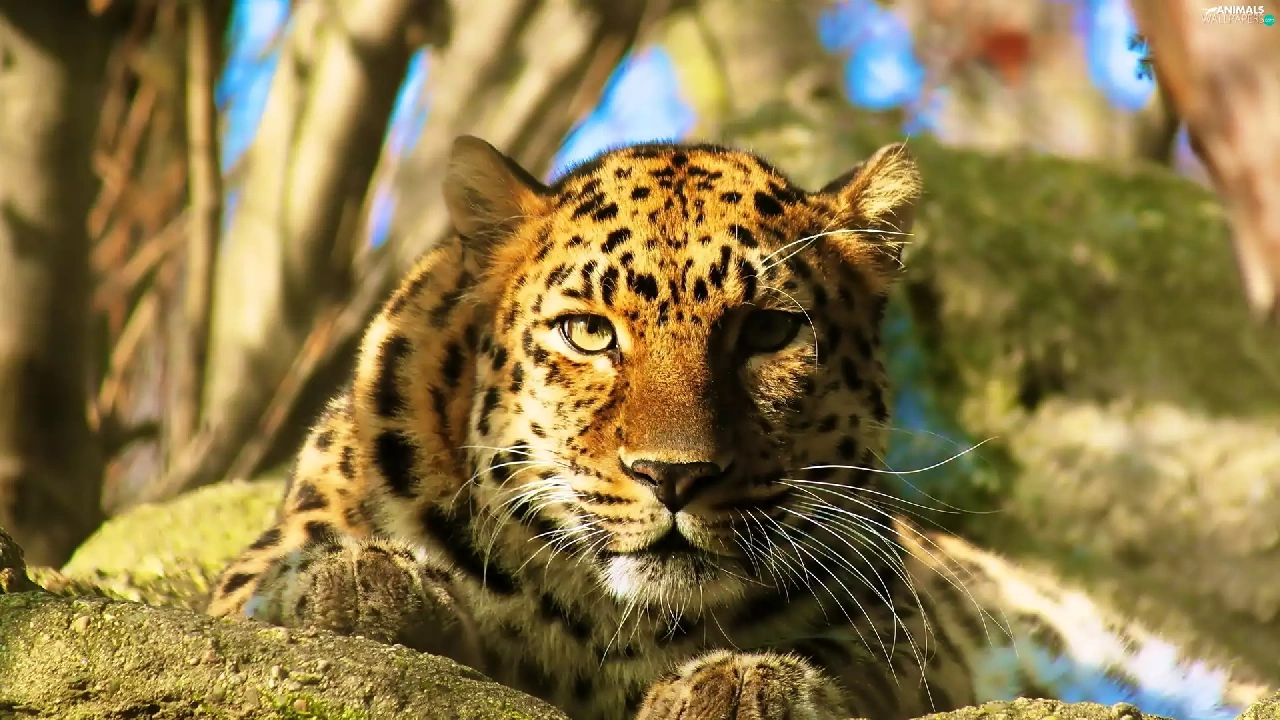 Leopards, rocks