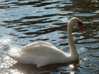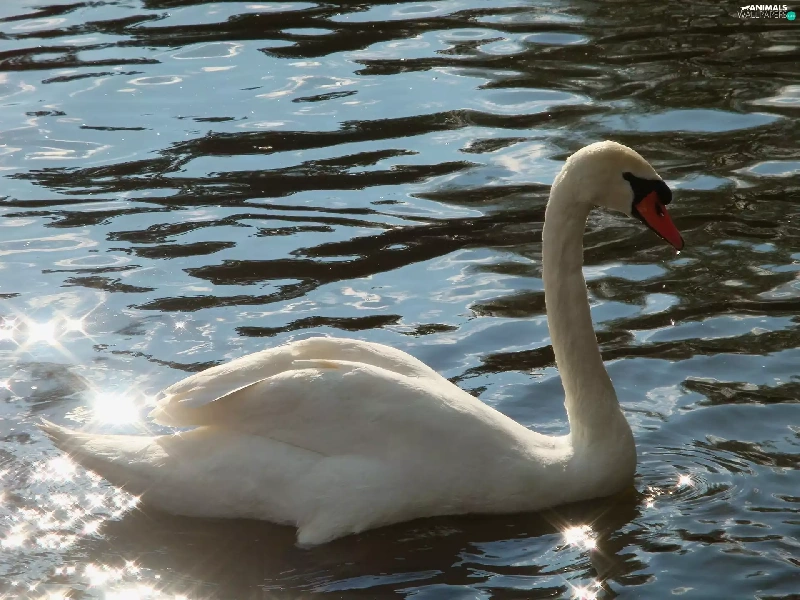 reflections, light, Swans, water, White