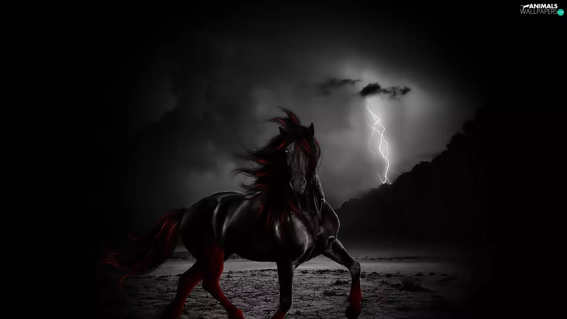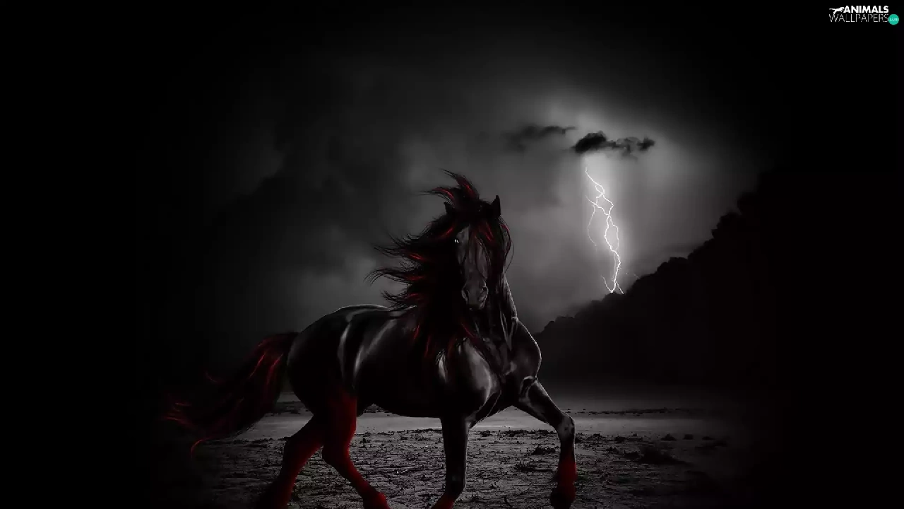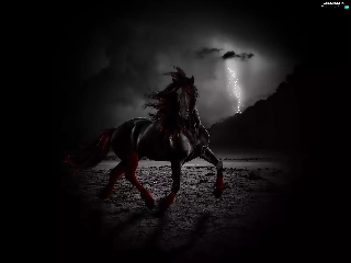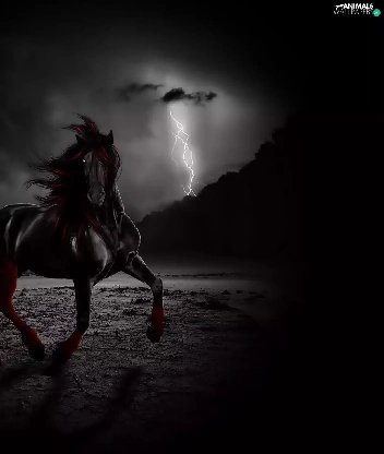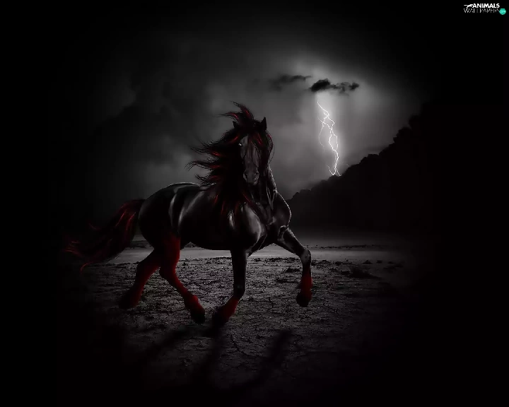 lightning, Black, Horse