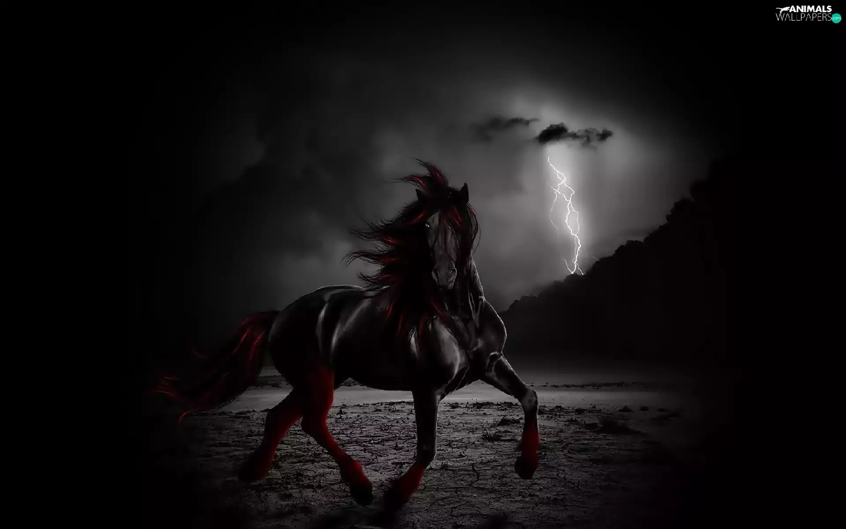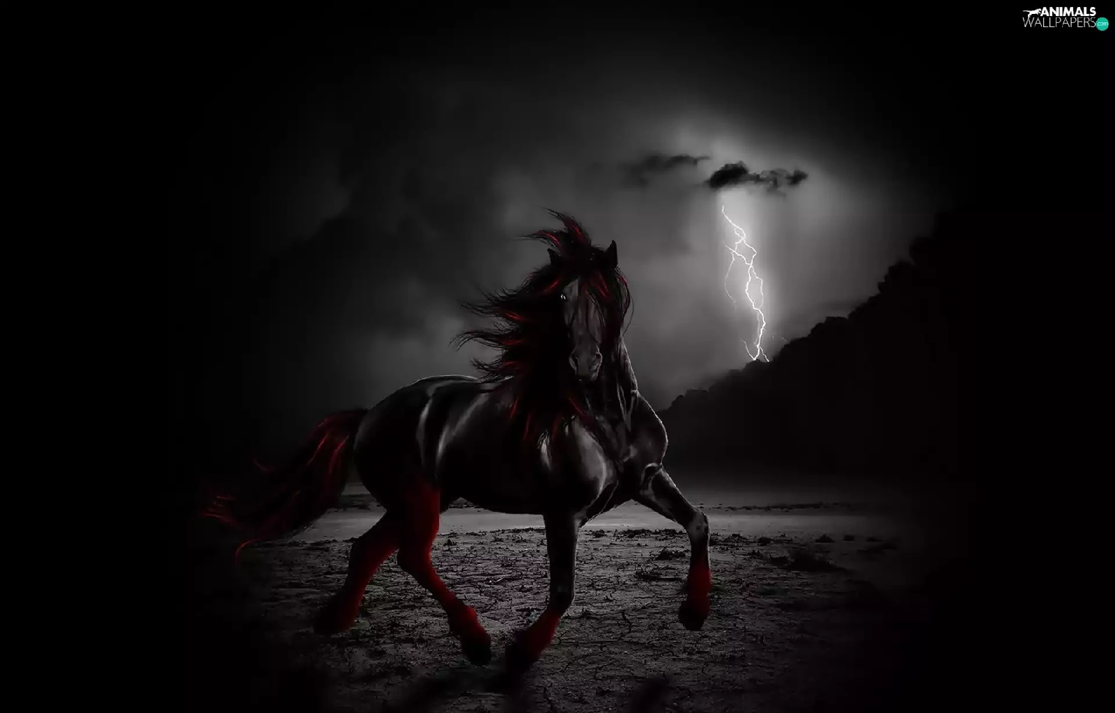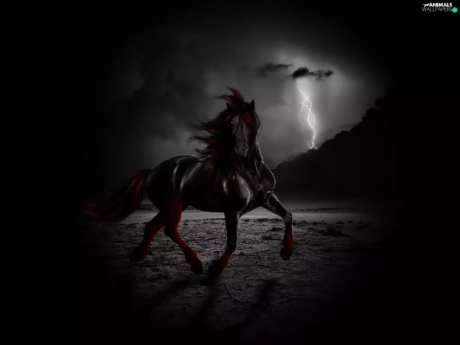 lightning, Black, Horse