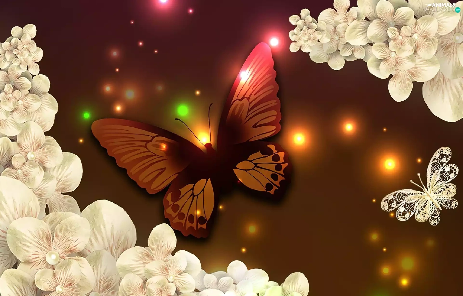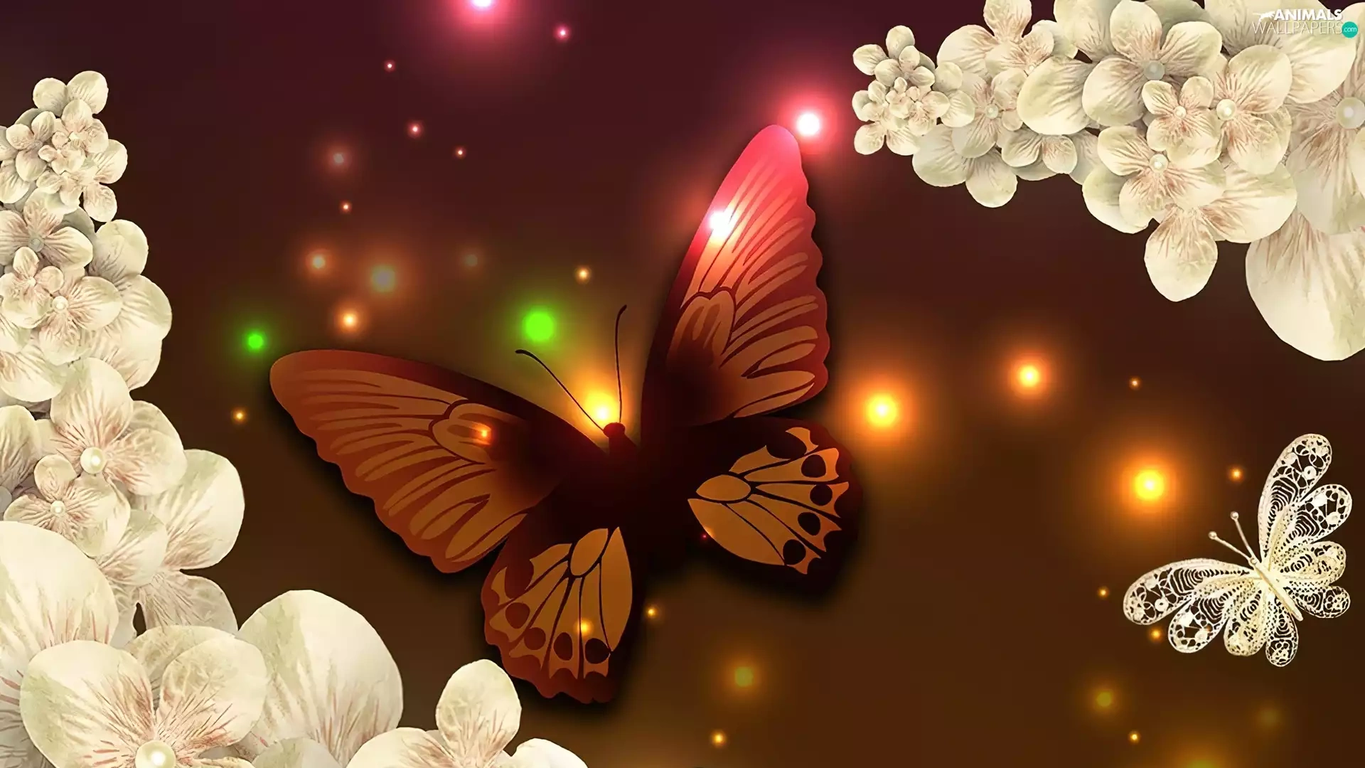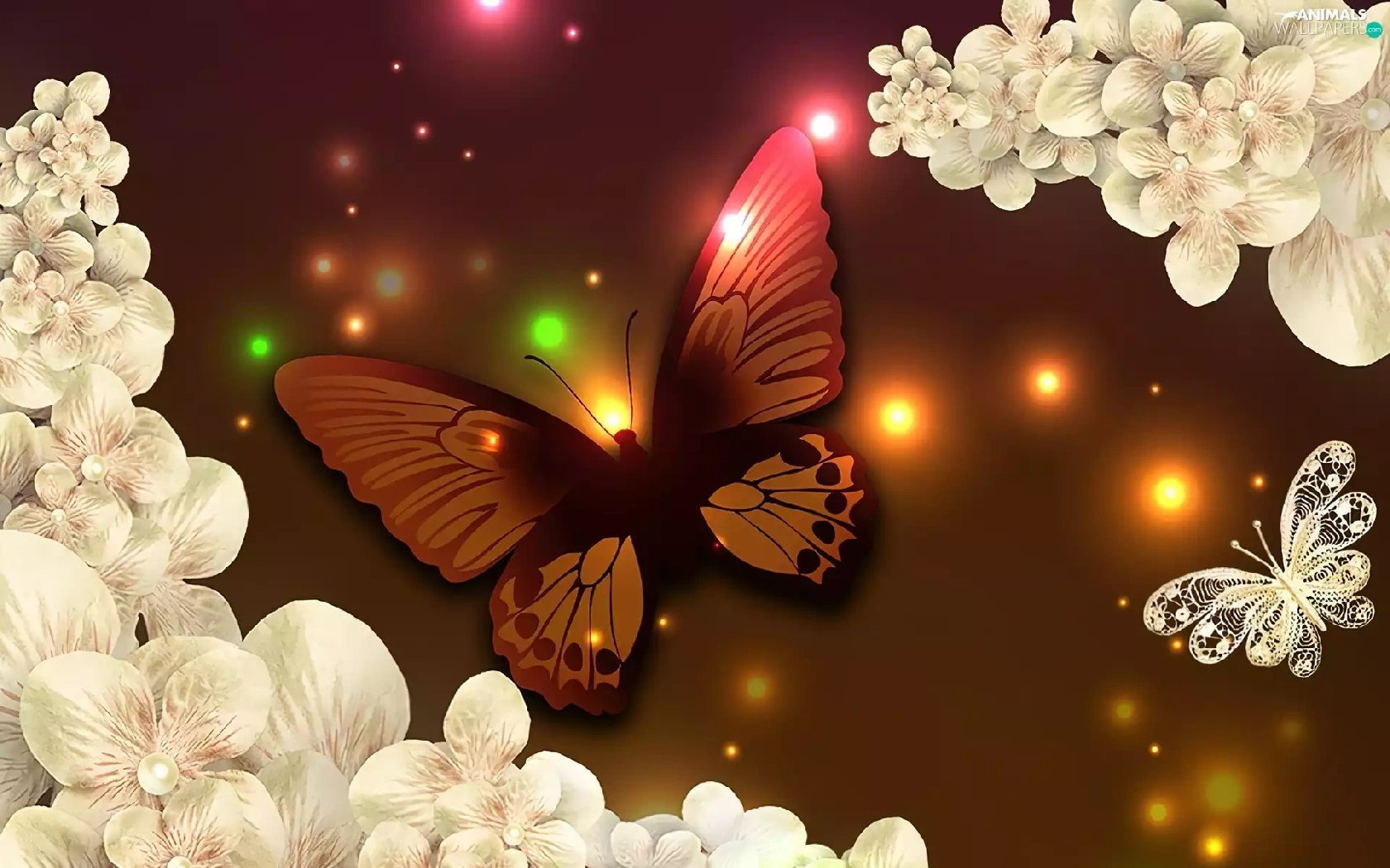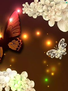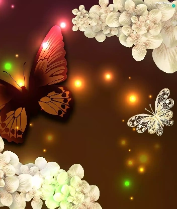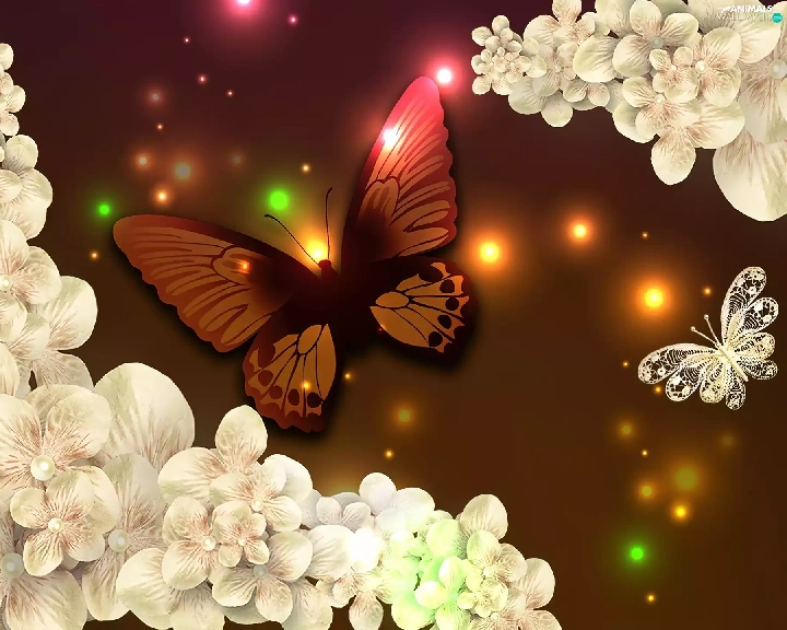 lights, butterfly, Flowers