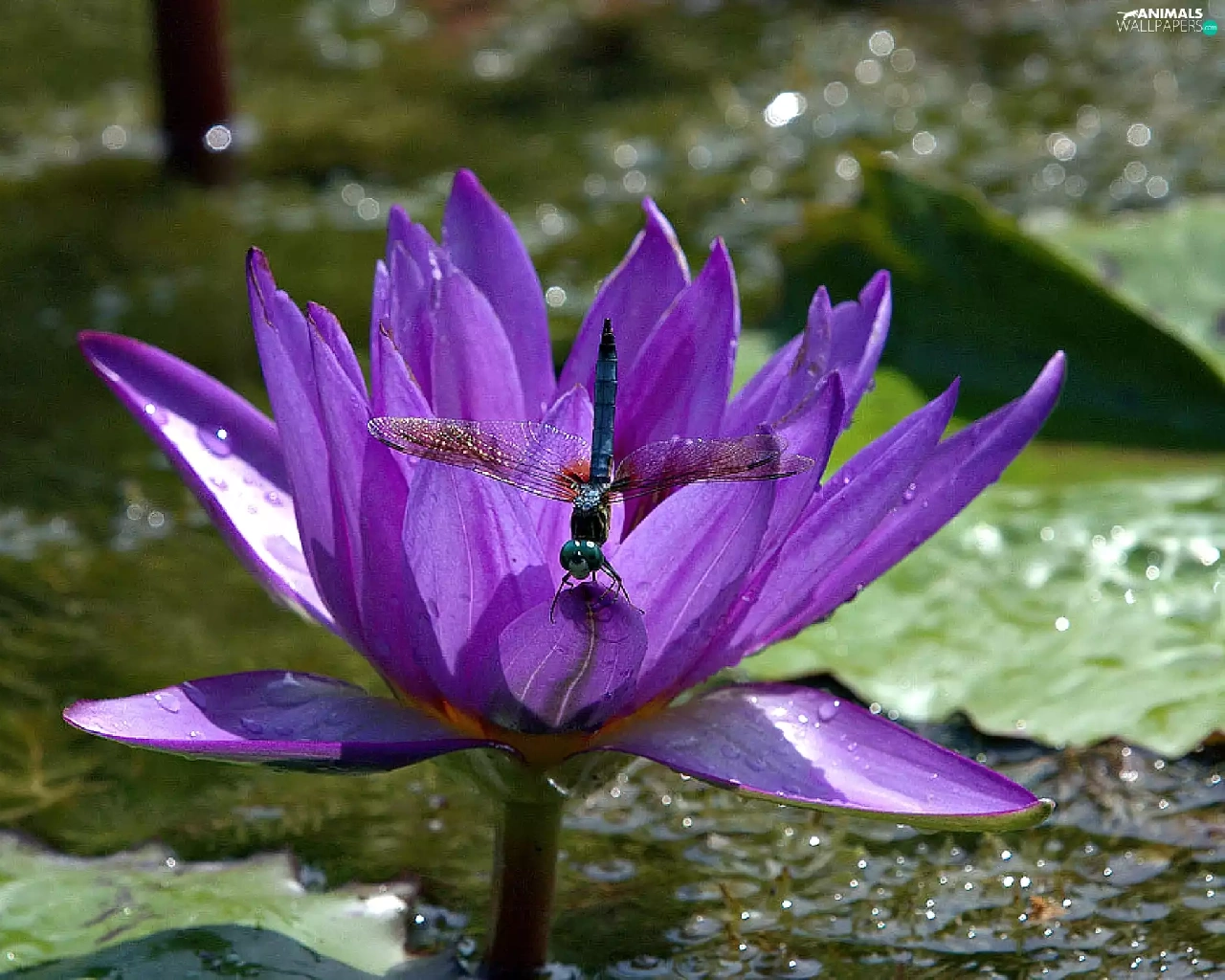 dragon-fly, Violet, Lily