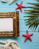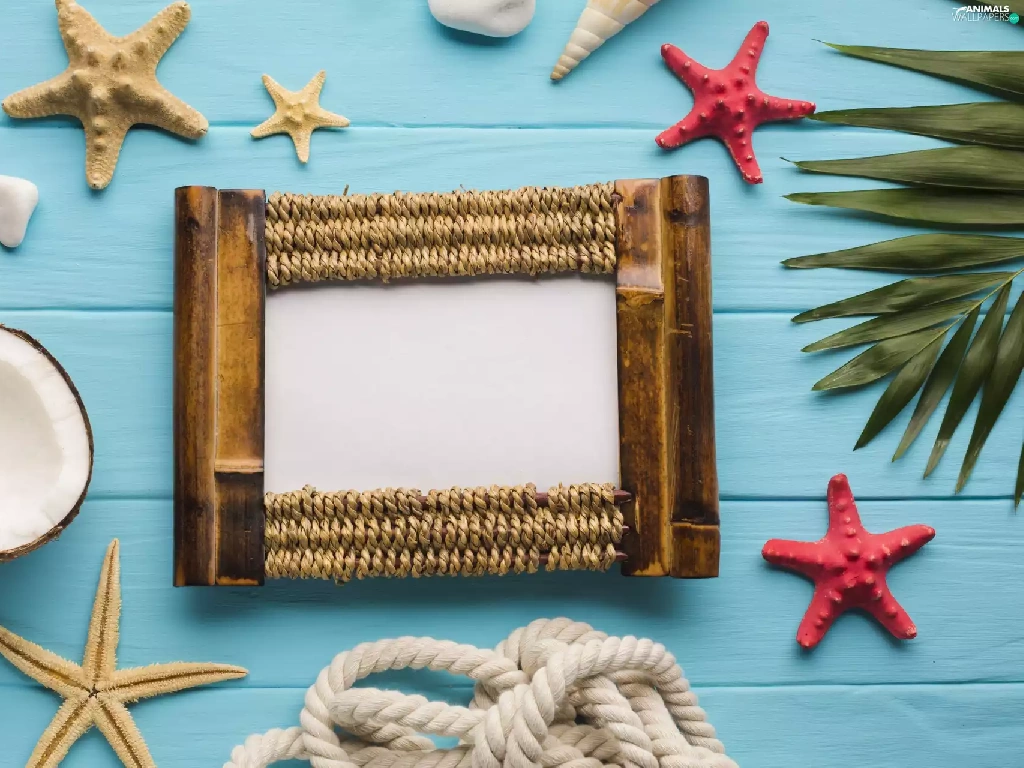 Coconut, starfish, leaf, line, frame, Shells