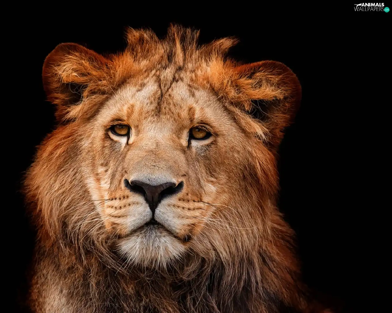 Lion, lion, black background, Head