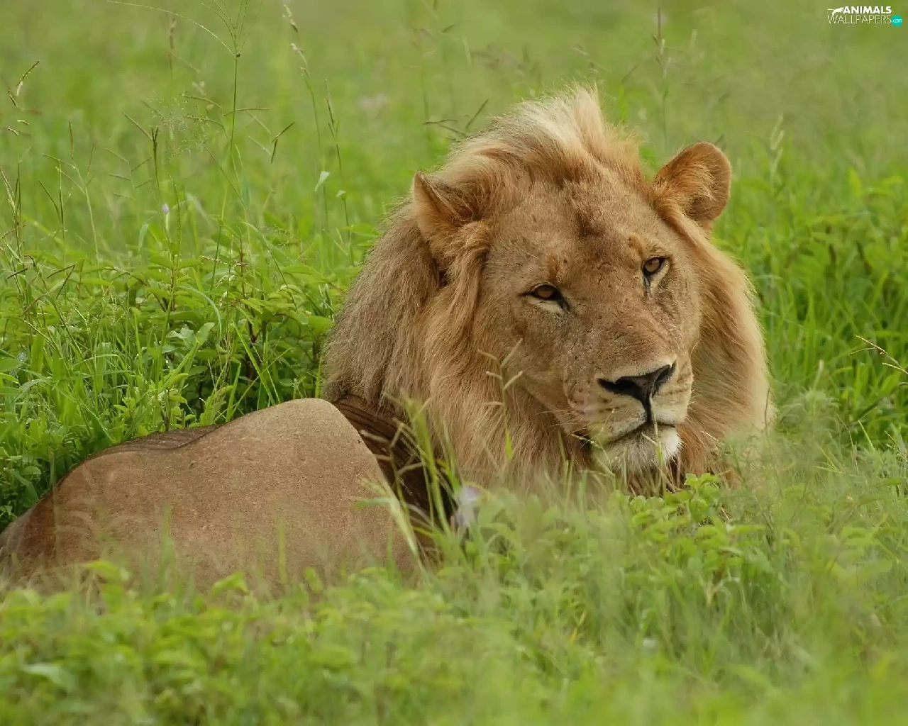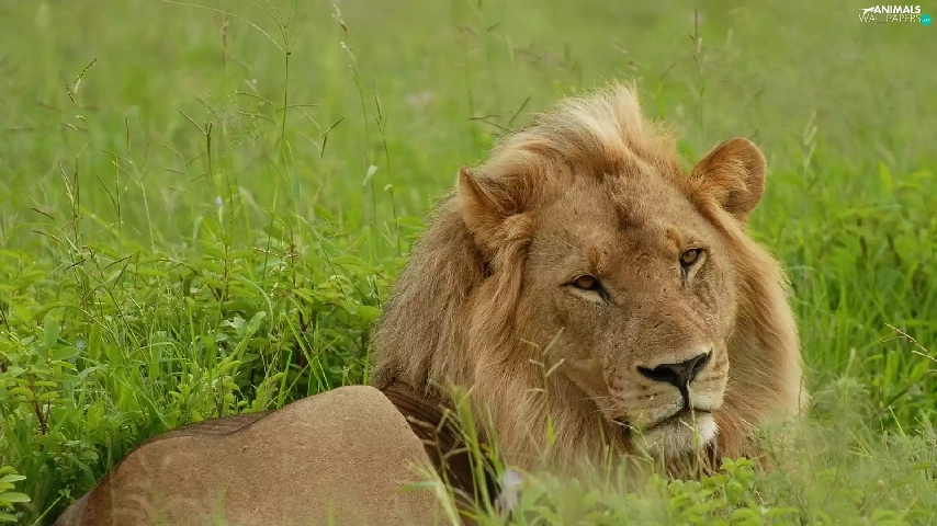 Lion, grass