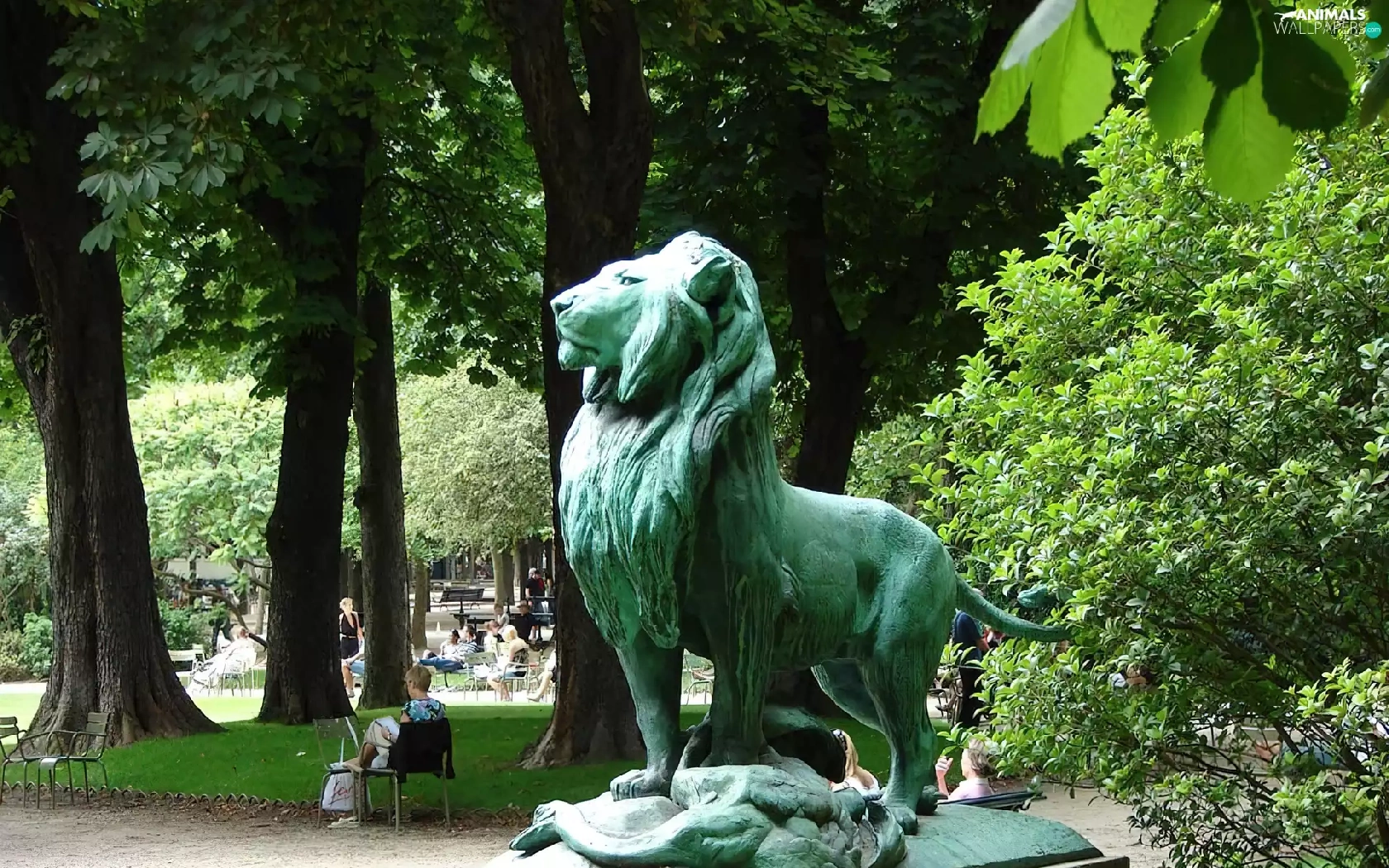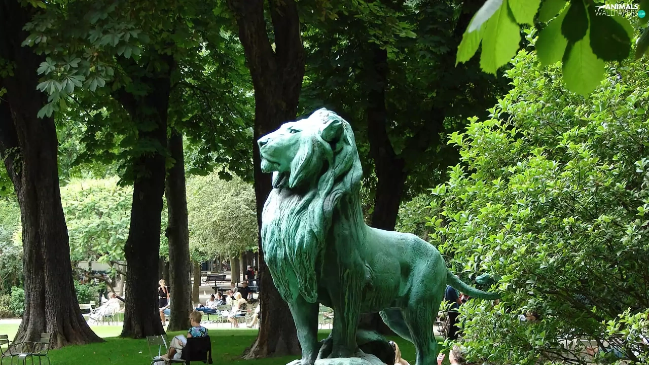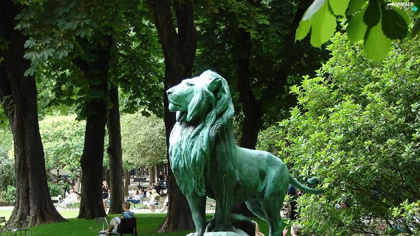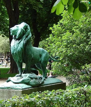 Monument, lion, Park, Castle, Luxembourg