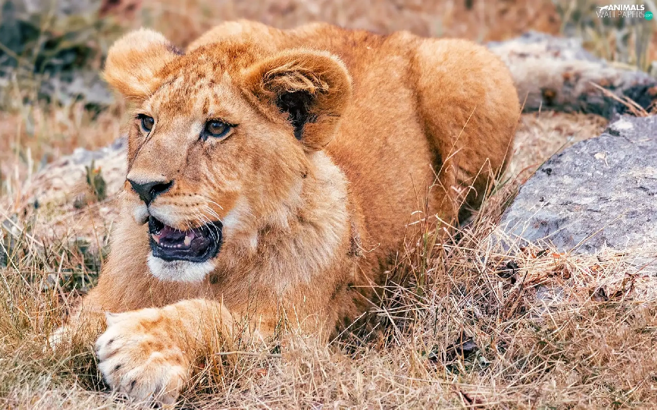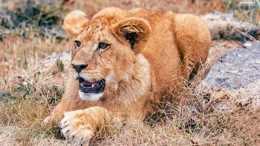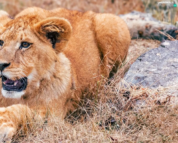 Lion, lying, young