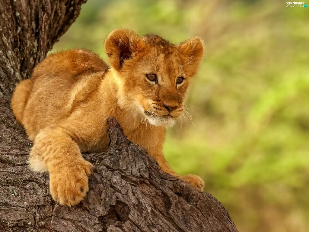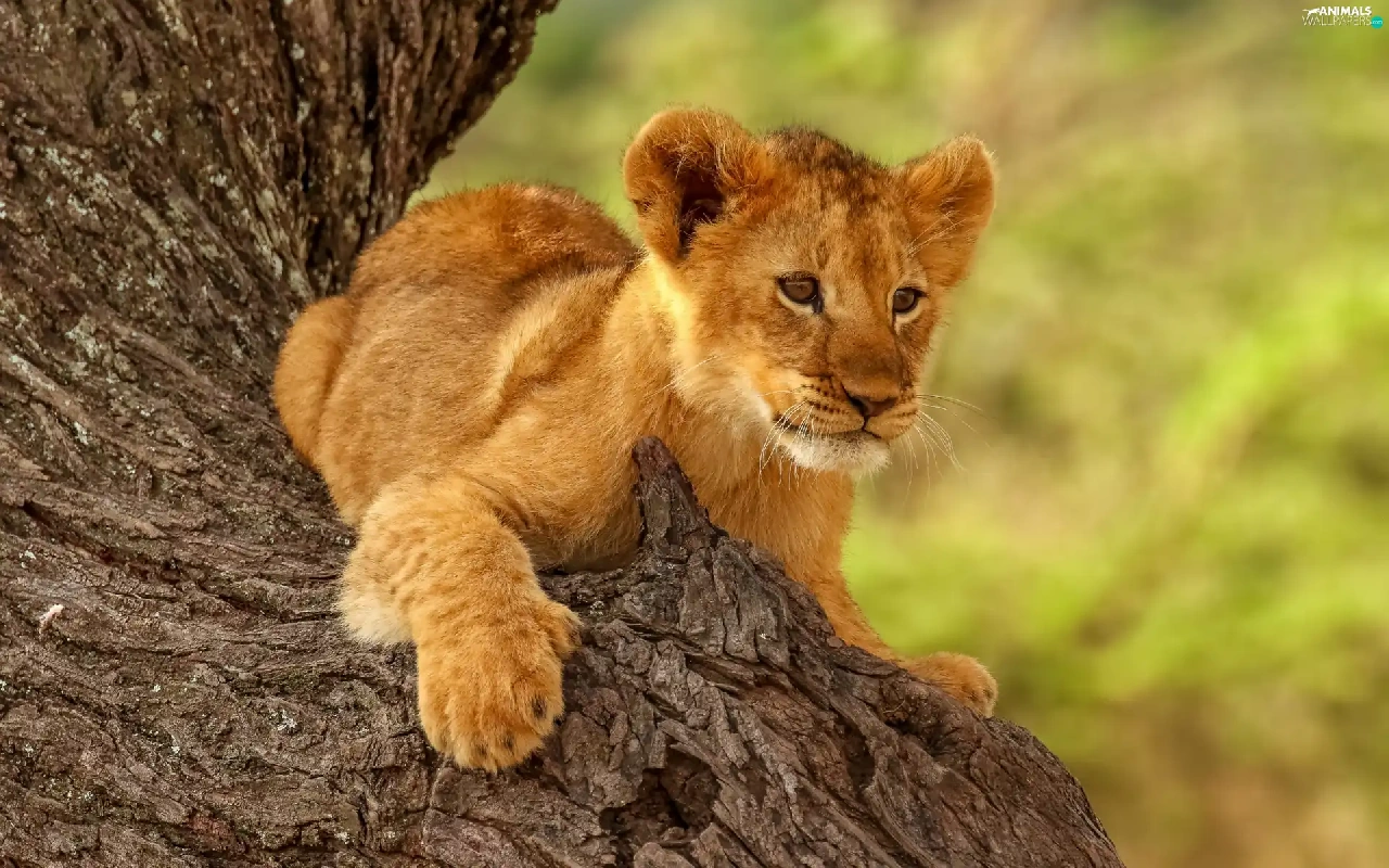 young, lion, trees, Lion