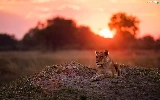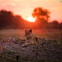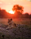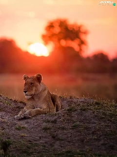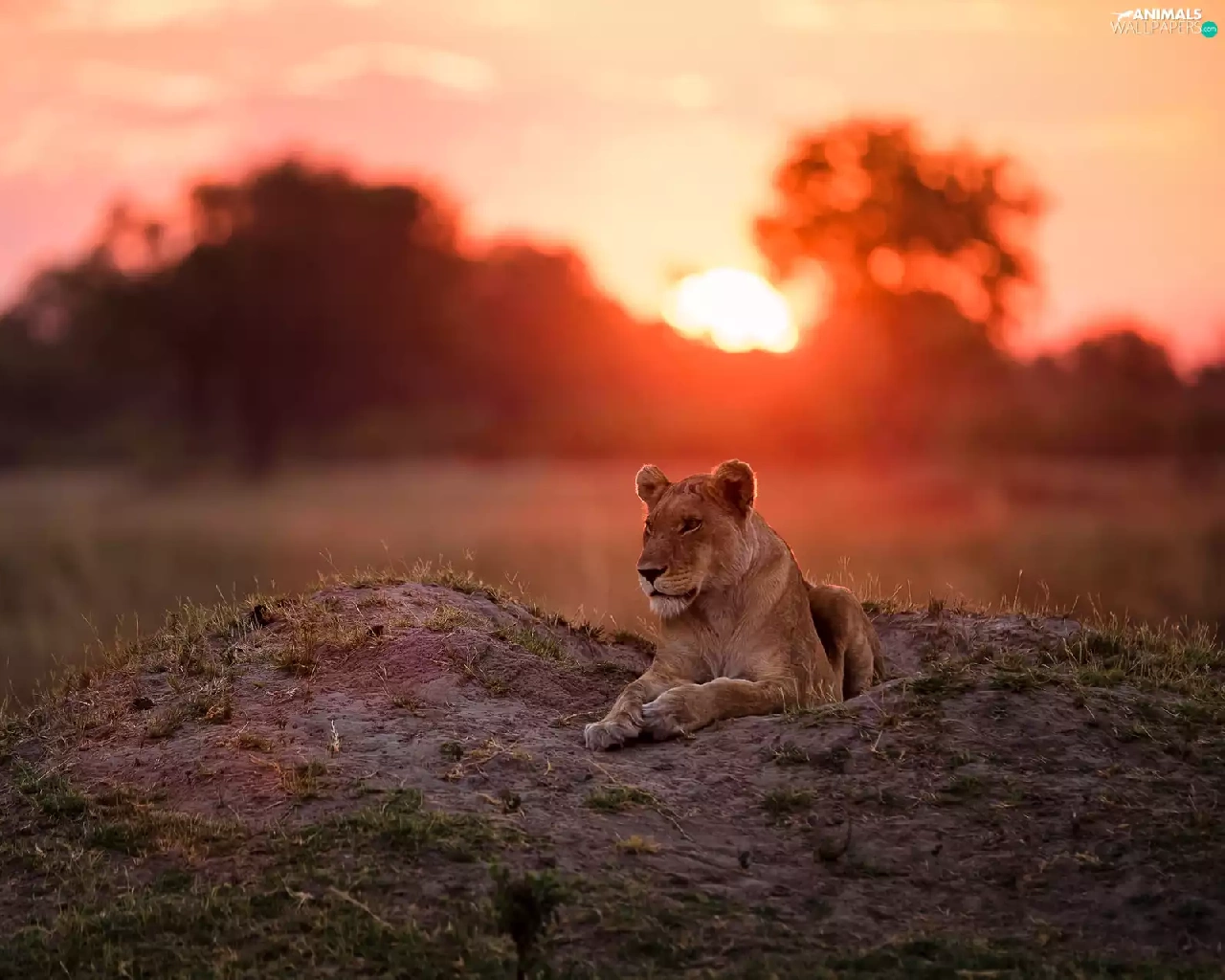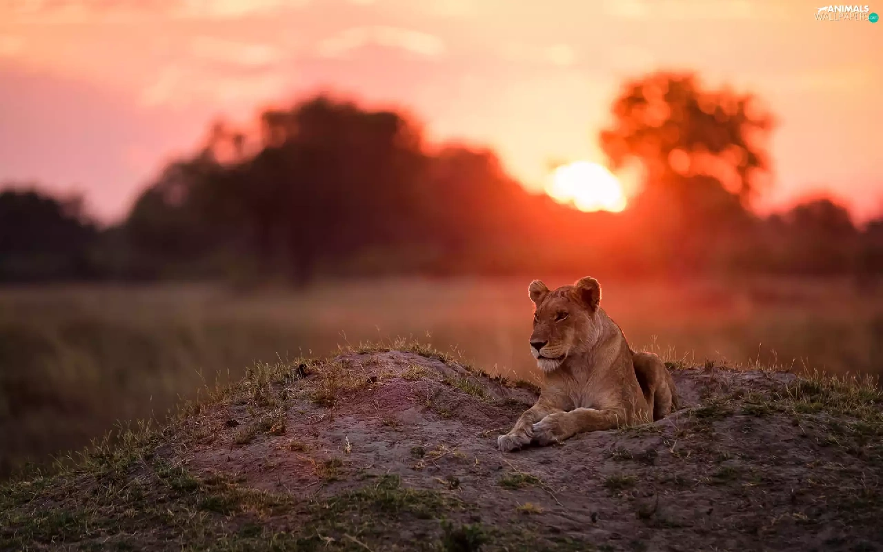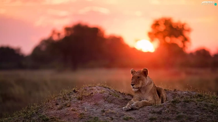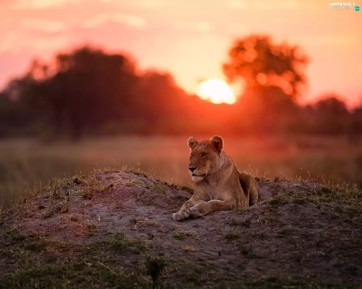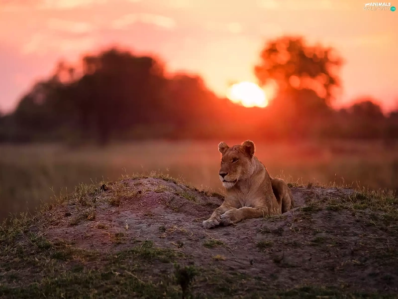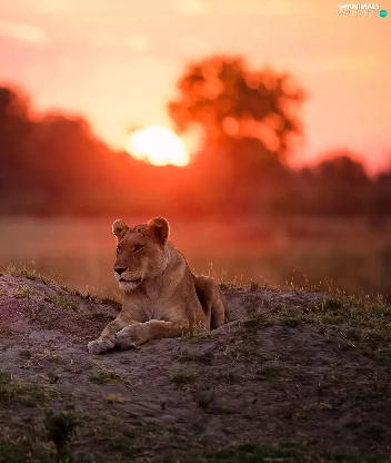 laying, west, sun, Lioness