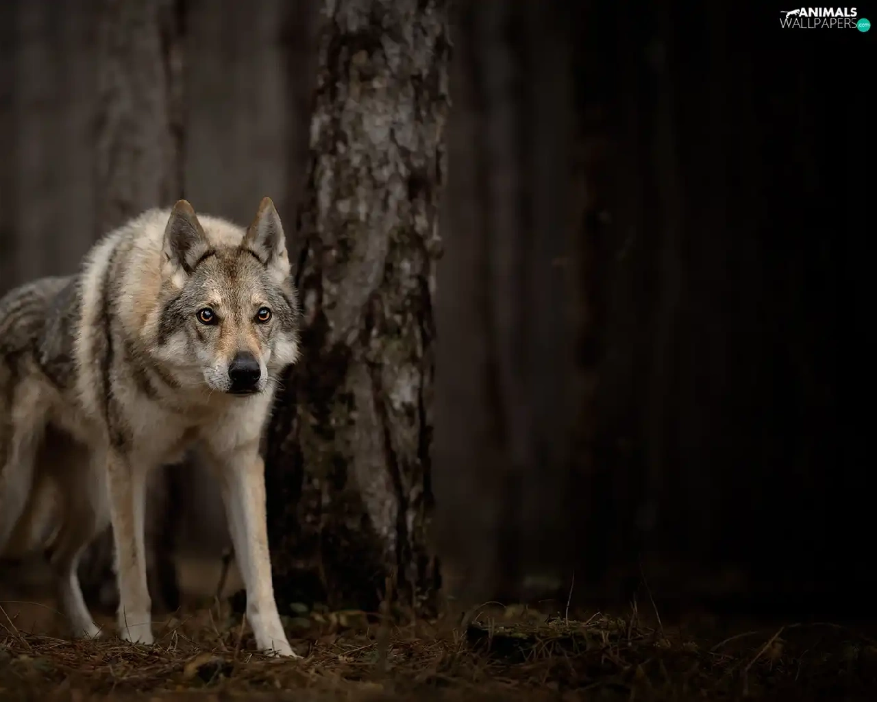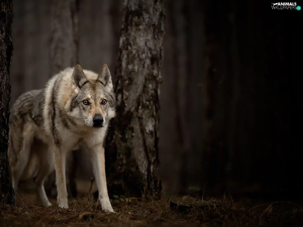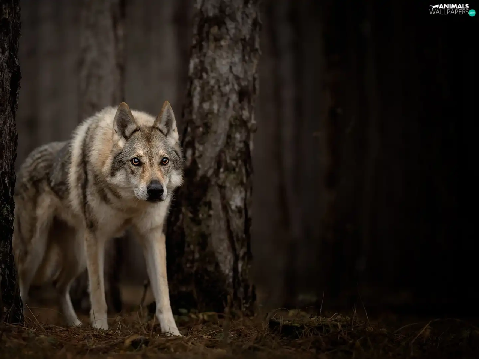 forest, dog, viewes, litter, trees, Czechoslovakian Wolfdog