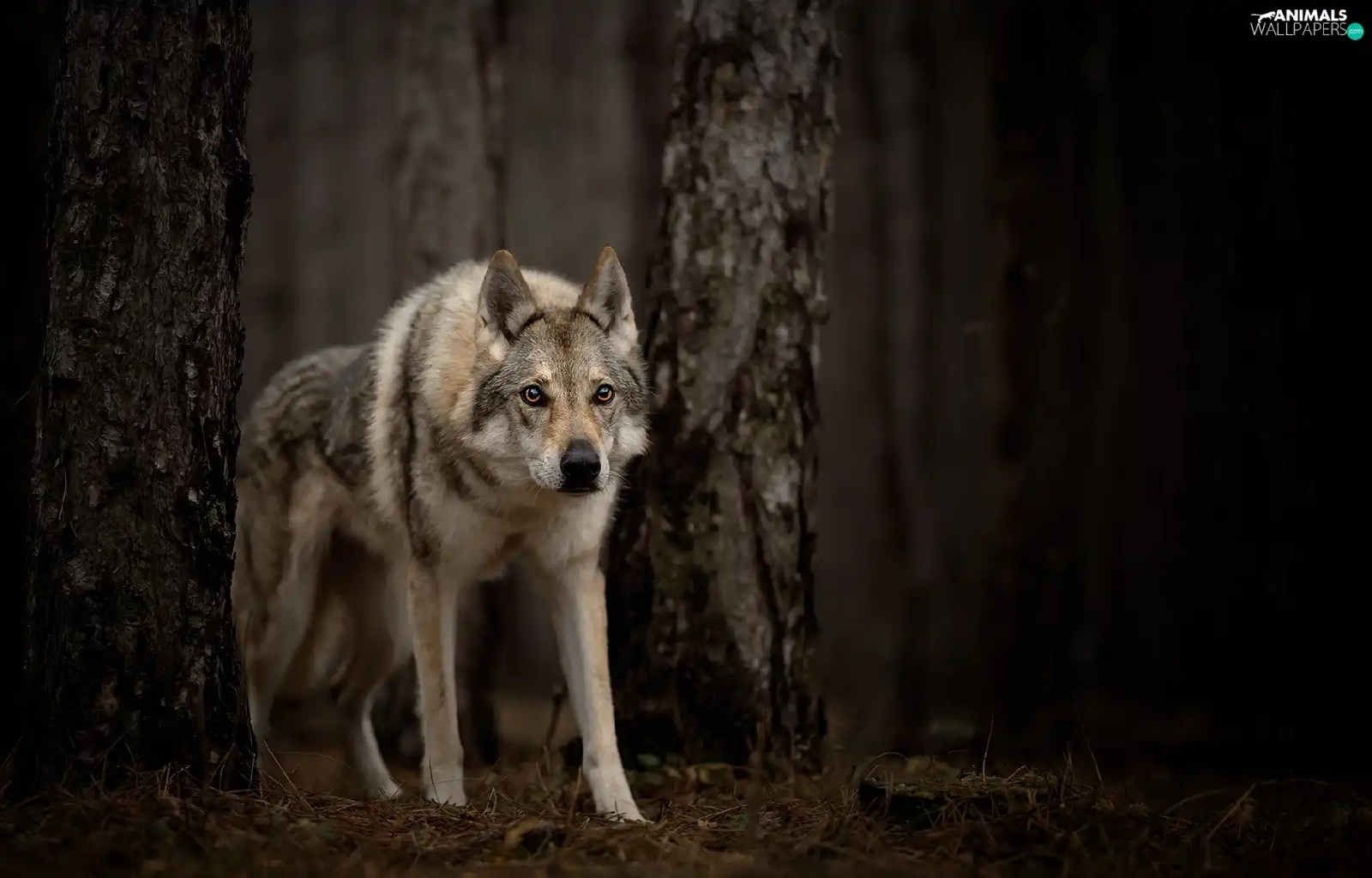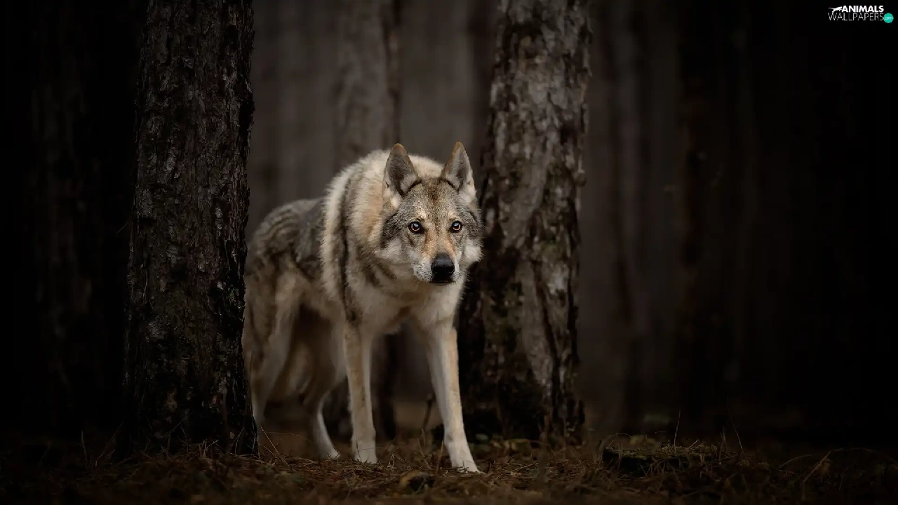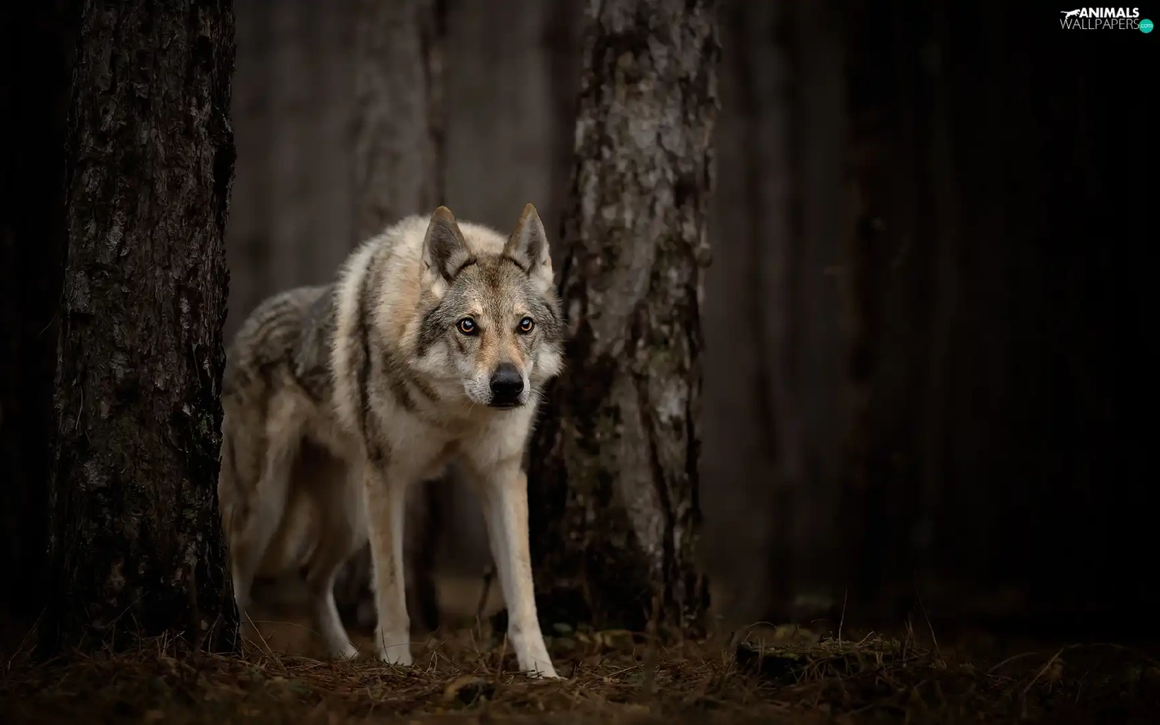 forest, dog, viewes, litter, trees, Czechoslovakian Wolfdog
