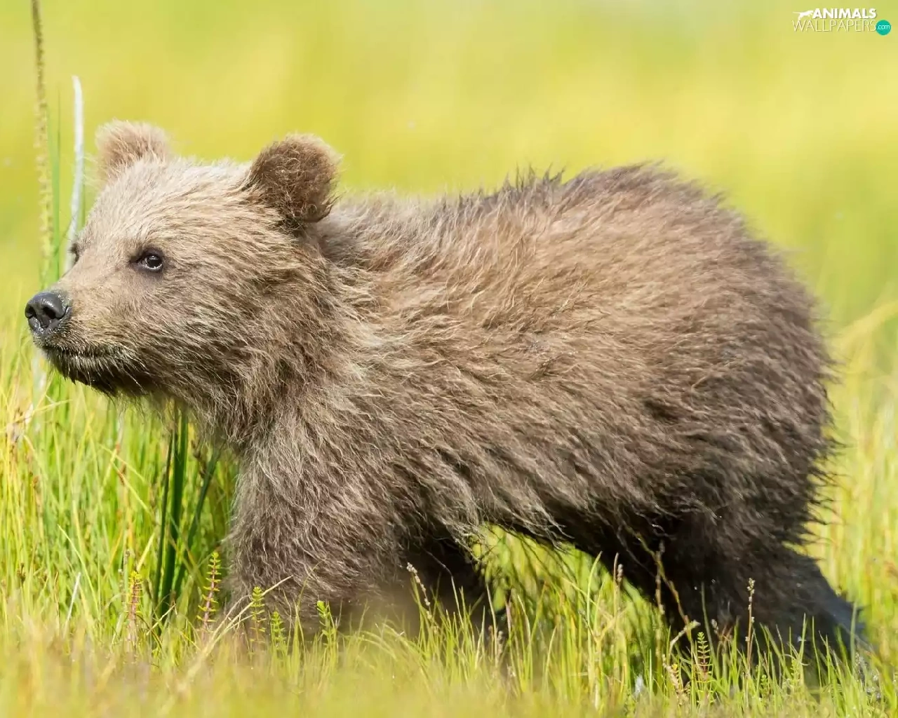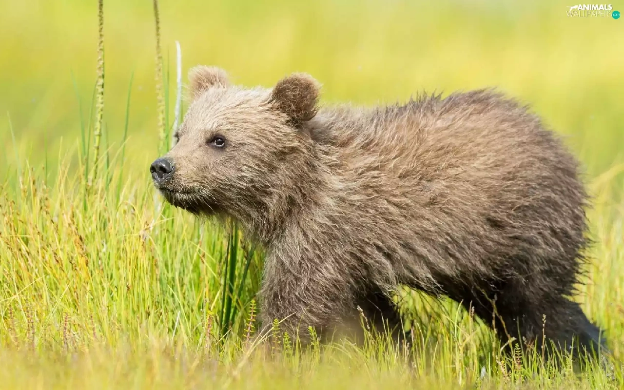 grass, little bear, Brown bear