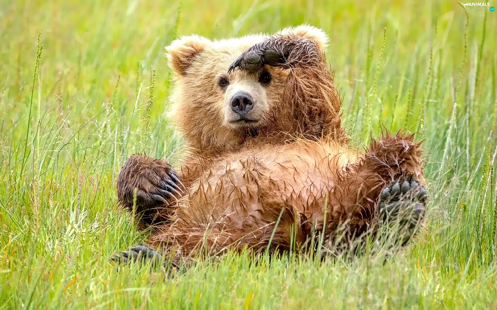 small, little bear, grass, Bear