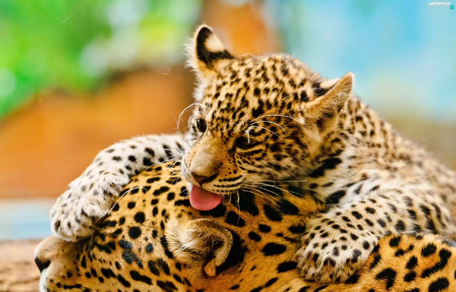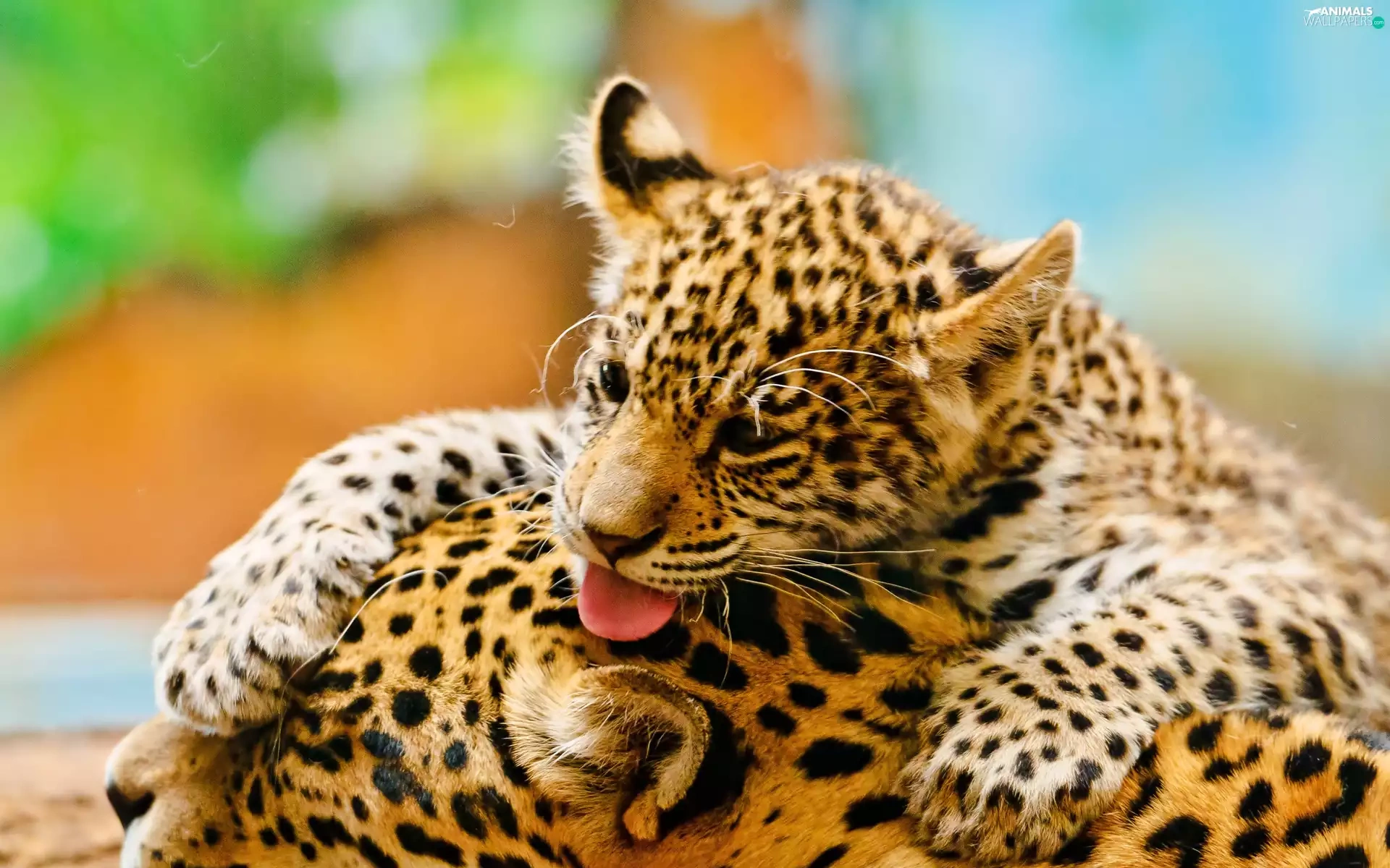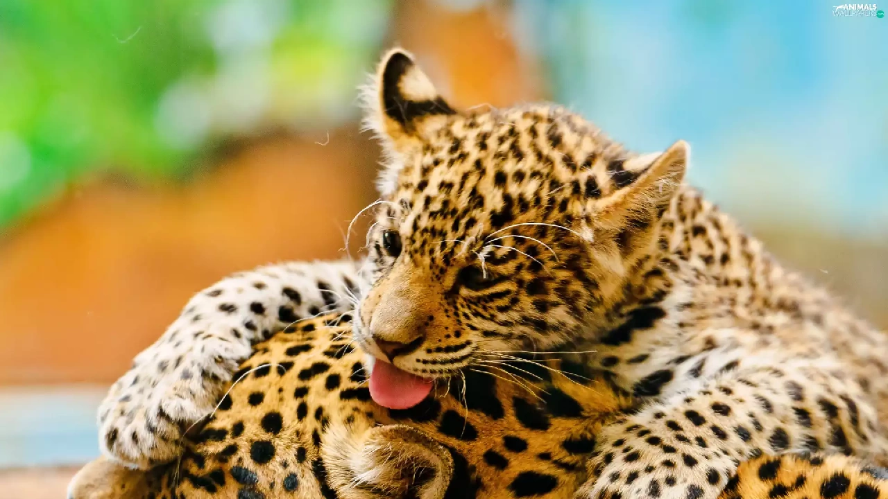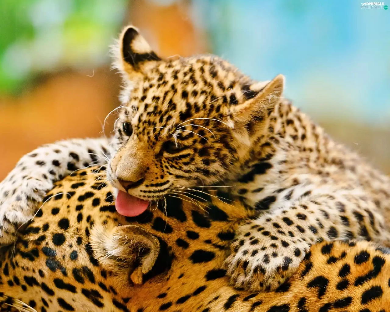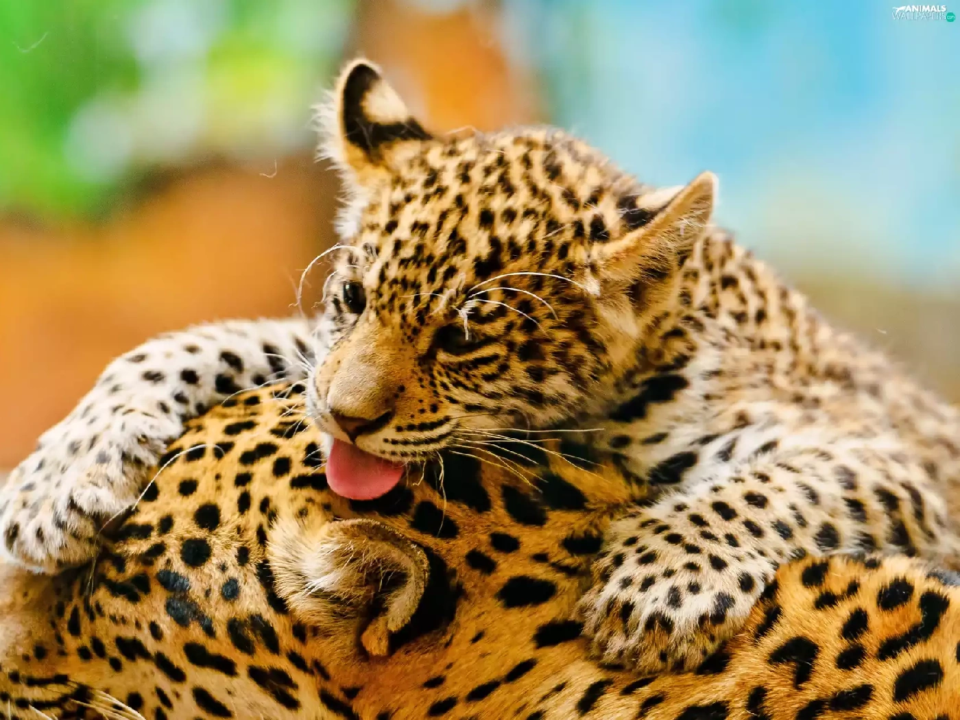 mother, little doggies, play, Leopards