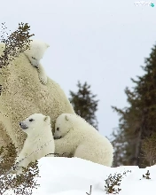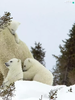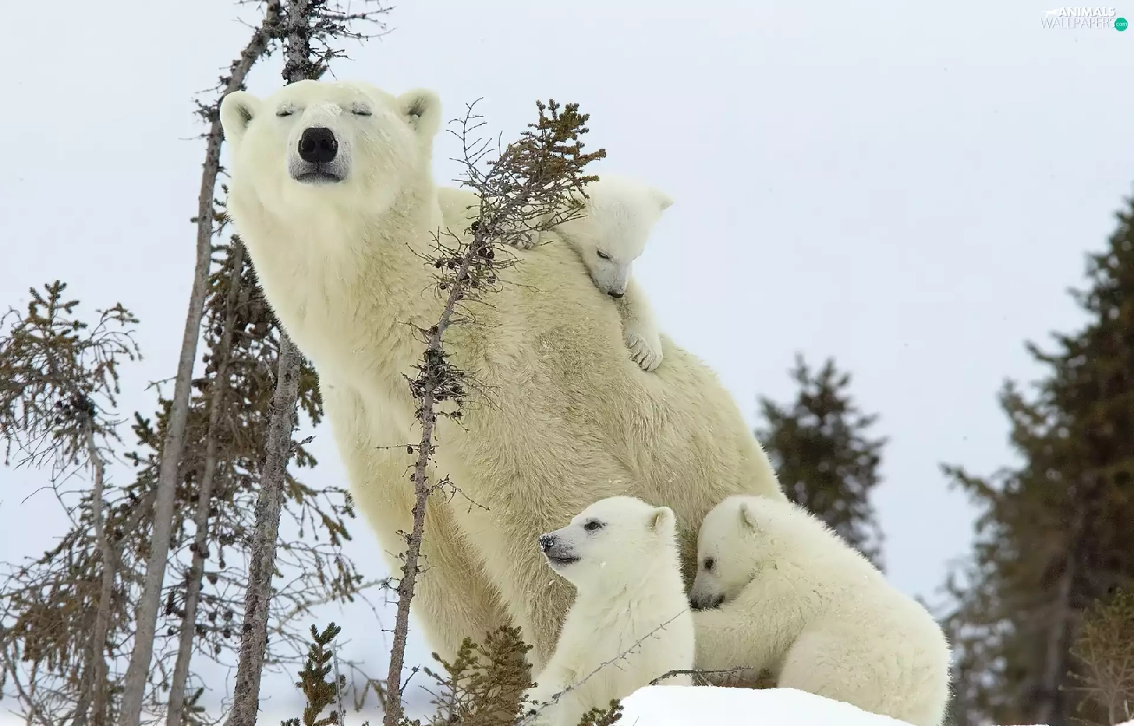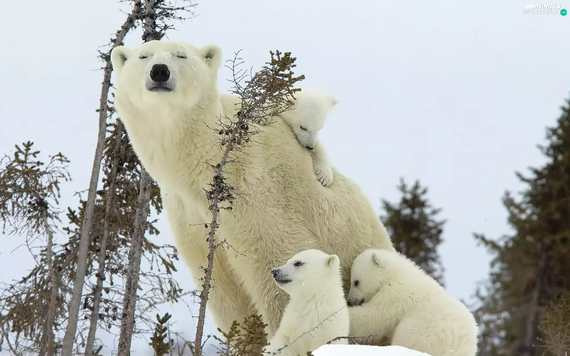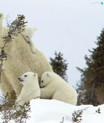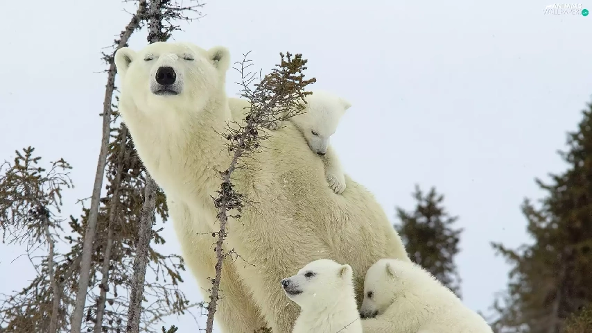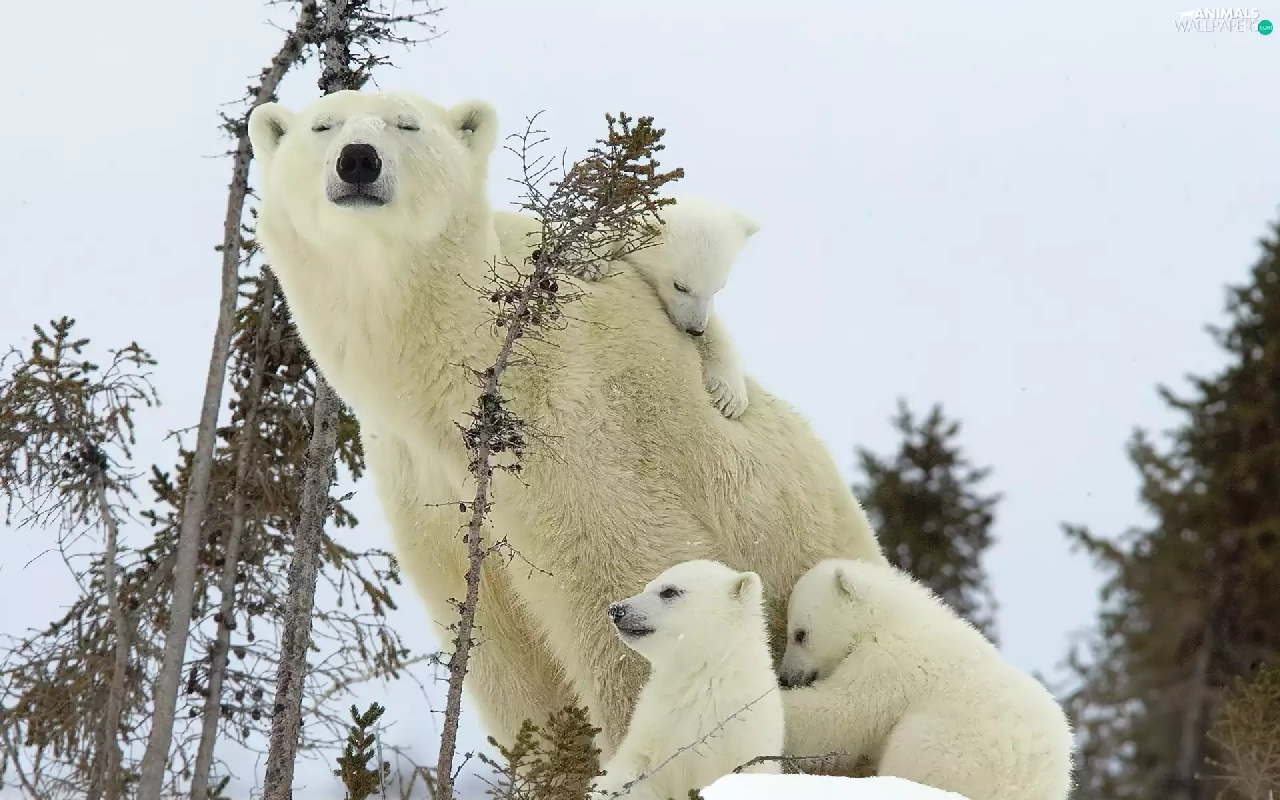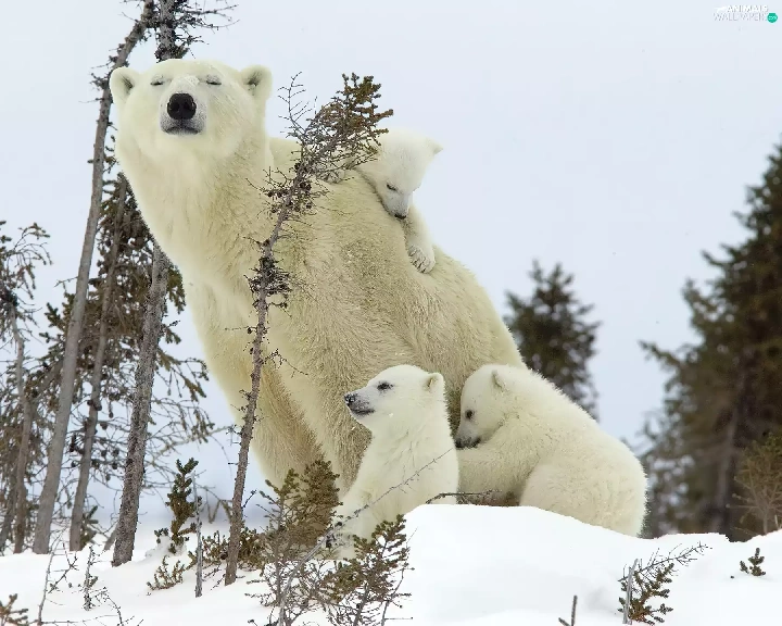 mother, little doggies, bear, Three