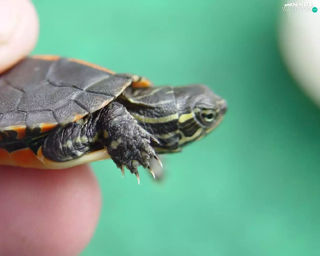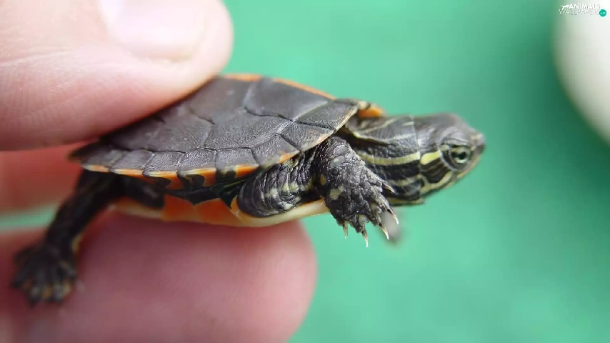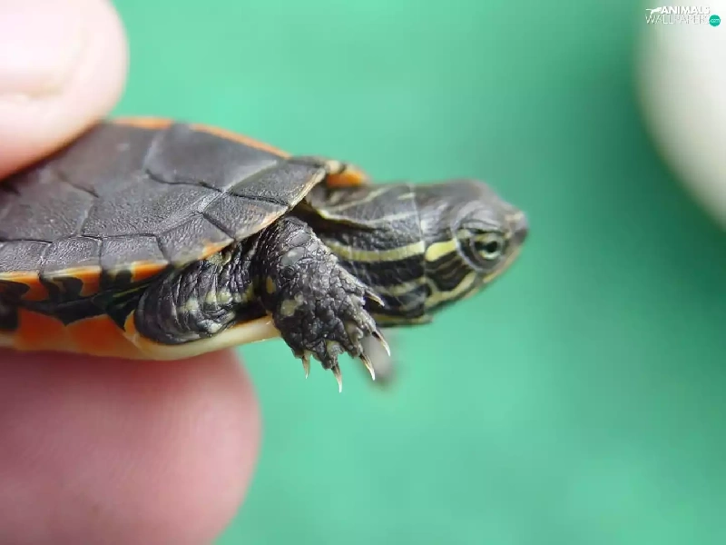 hand, turtle, water, Little
