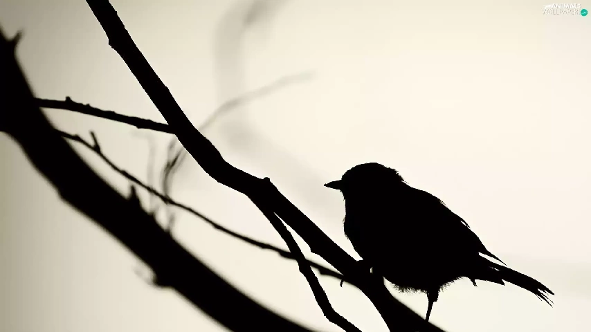 outline, bird, twig, Little