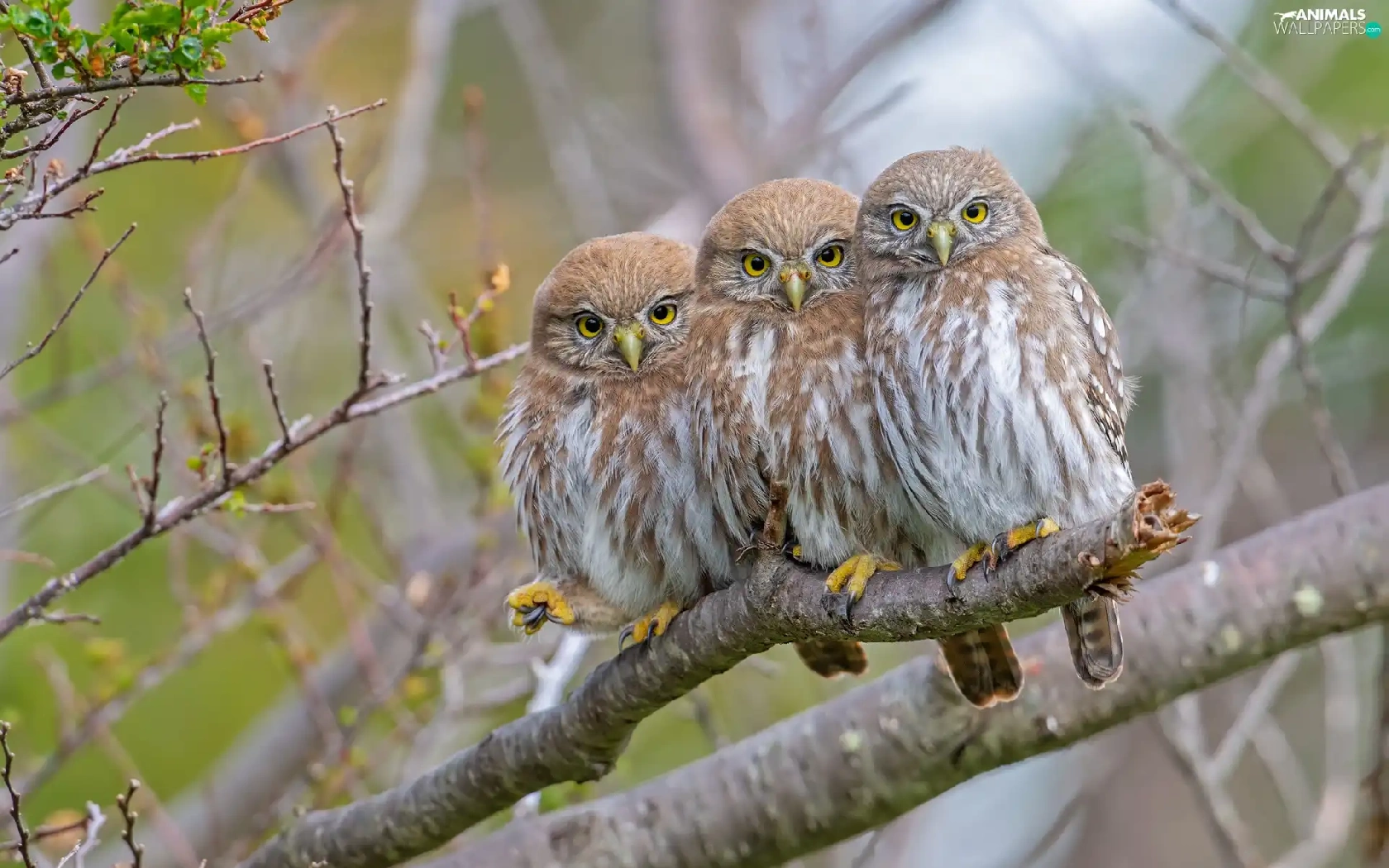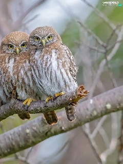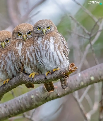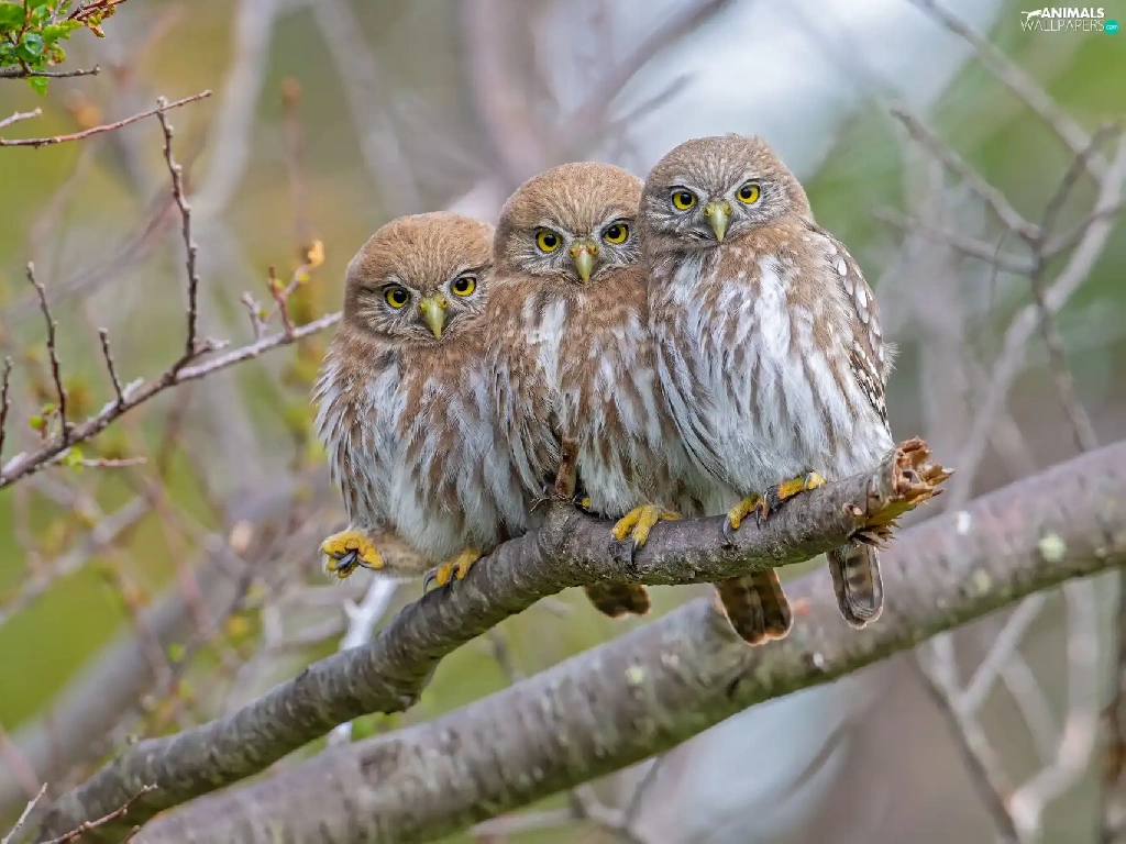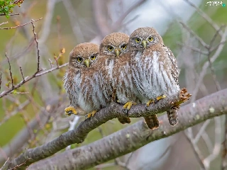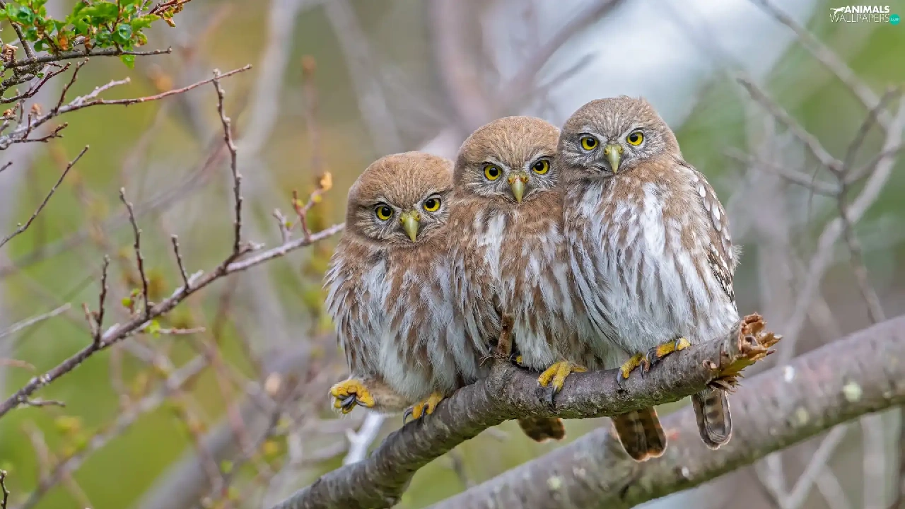 Three, Little Owl, branch, Owls