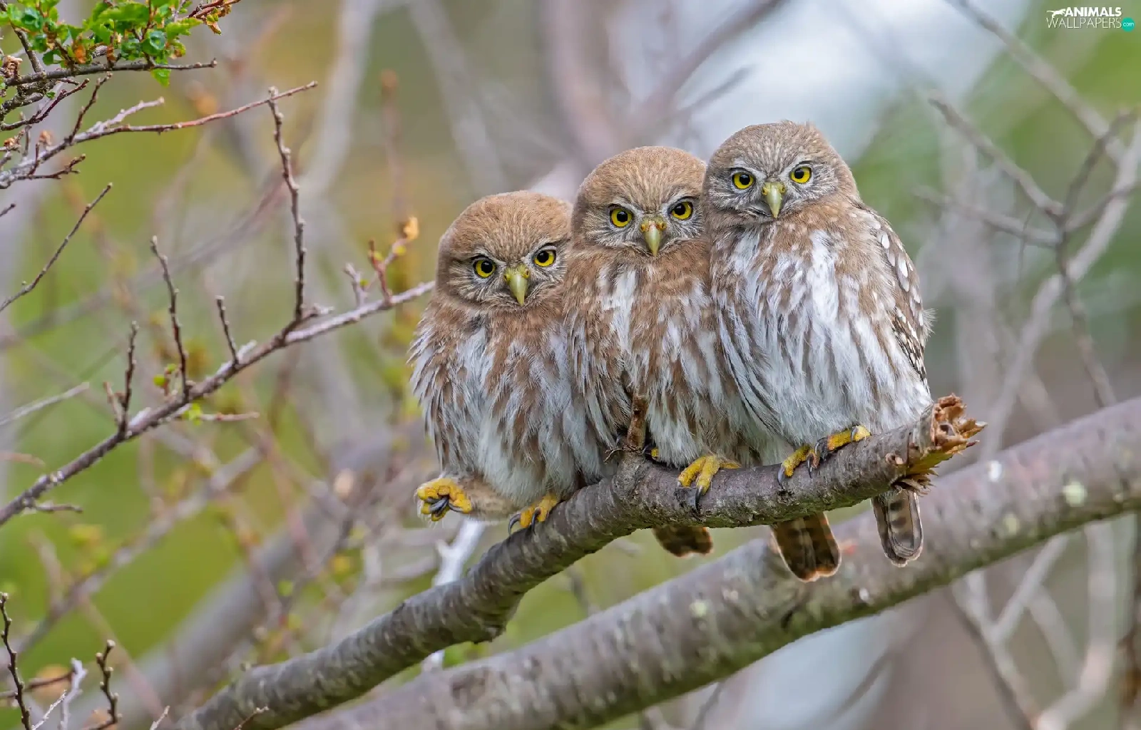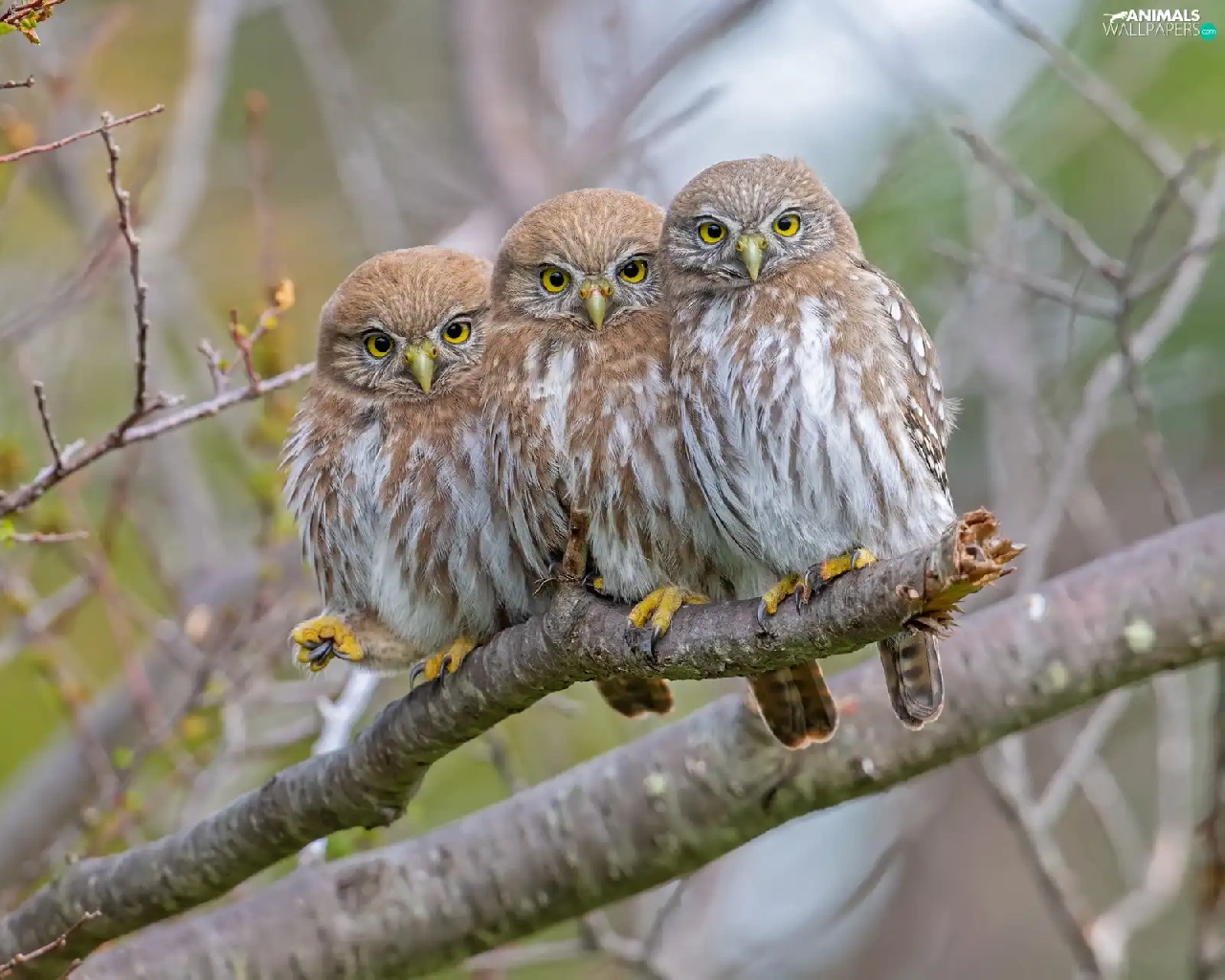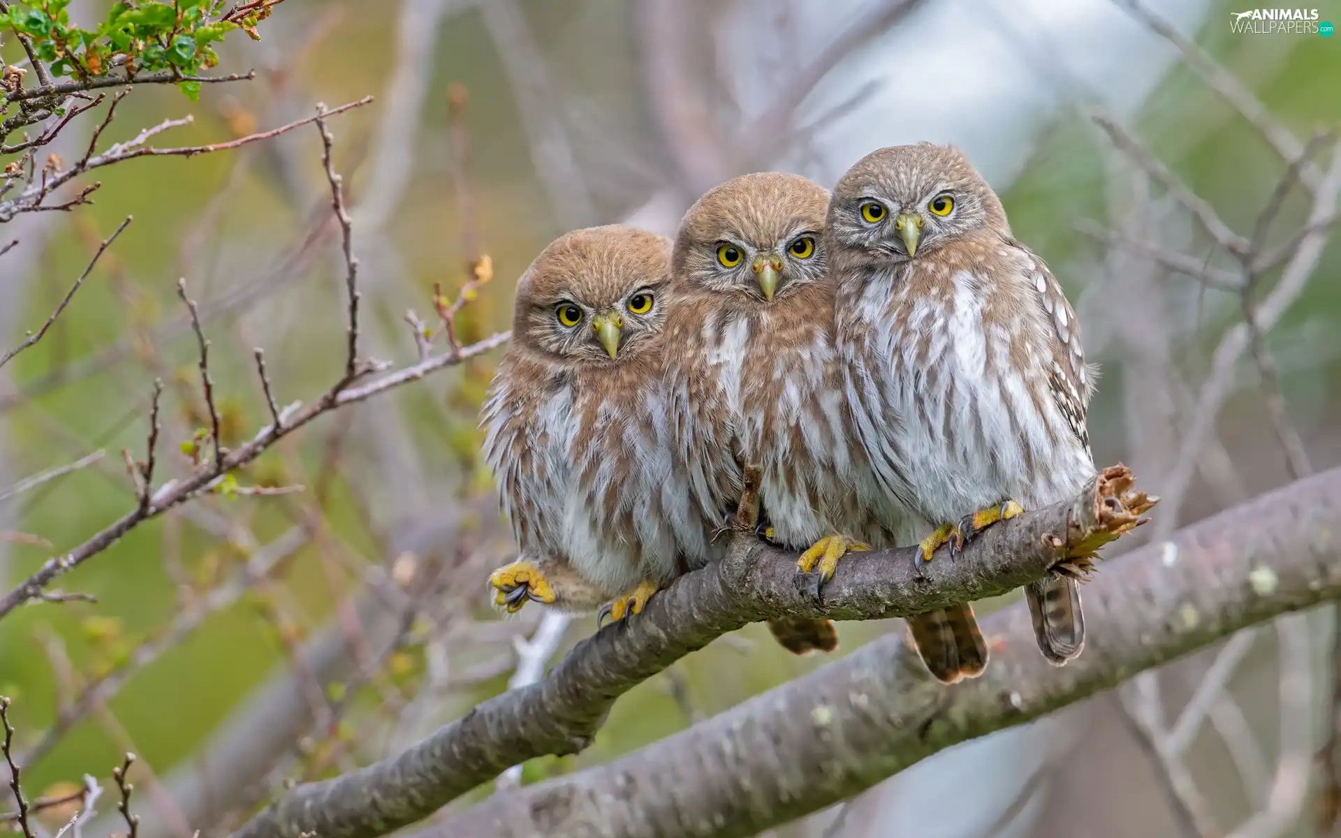 Three, Little Owl, branch, Owls