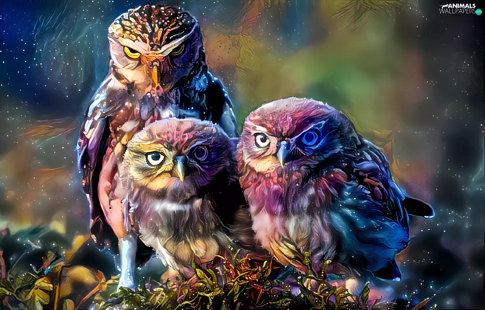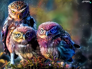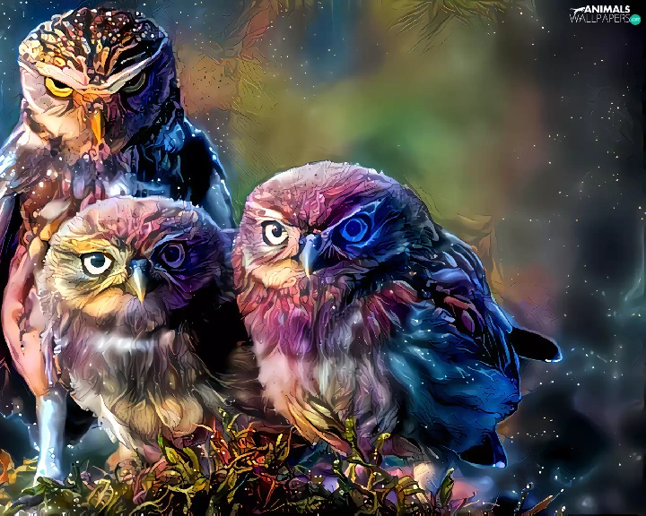 Three, Little Owl, graphics, Owls