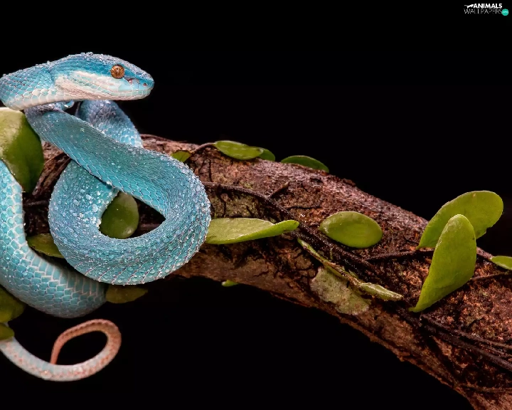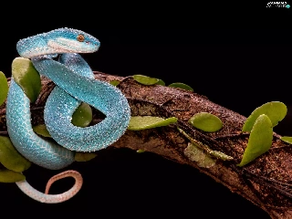Lod on the beach, Leaf, viper, Trimeresurus albolabris insularis, Blue
