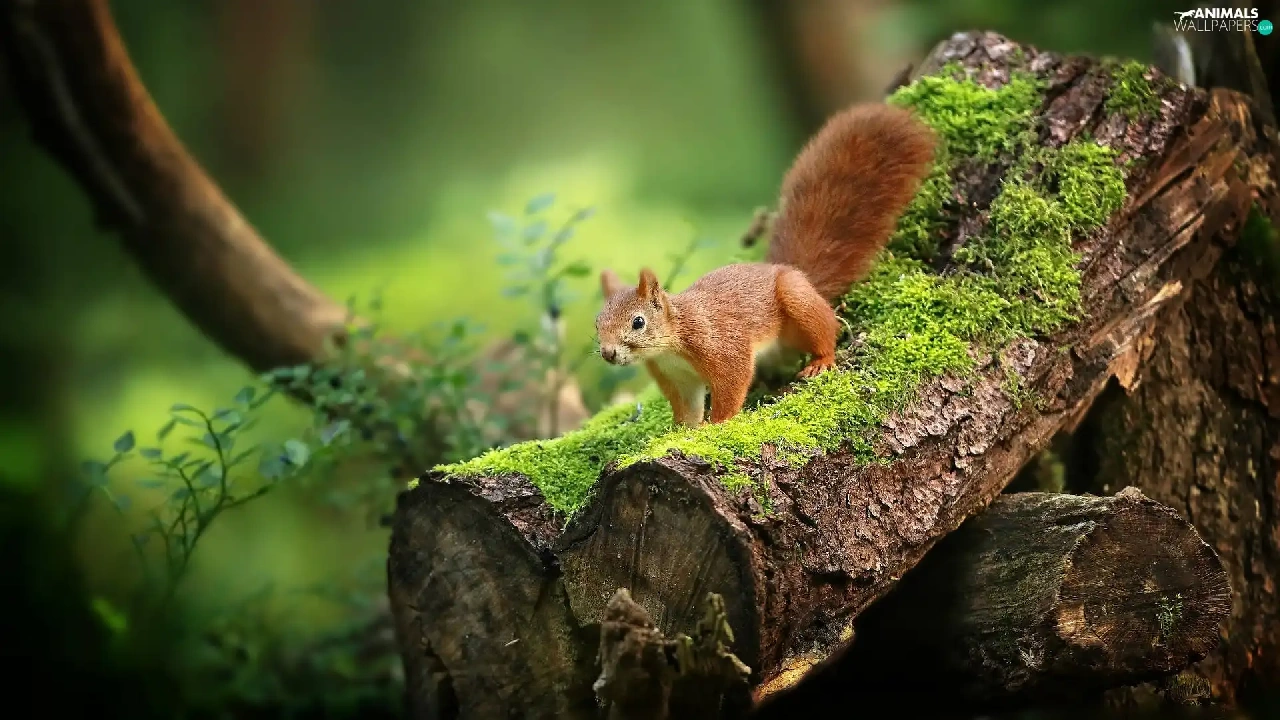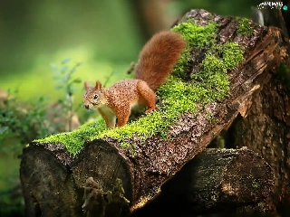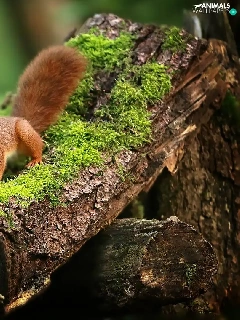 squirrel, trees, Moss, Lod on the beach