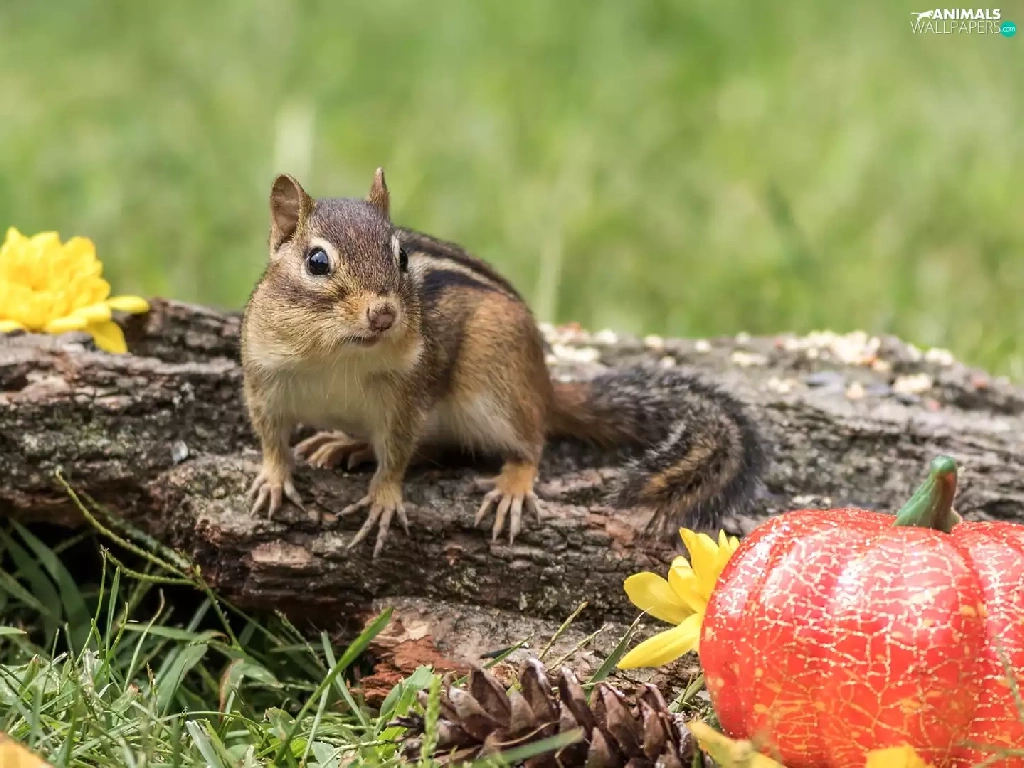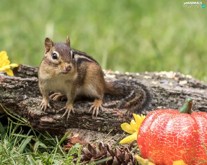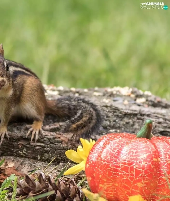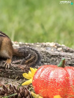 Chipmunk, Leaf, pumpkin, Lod on the beach