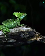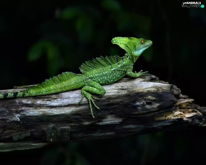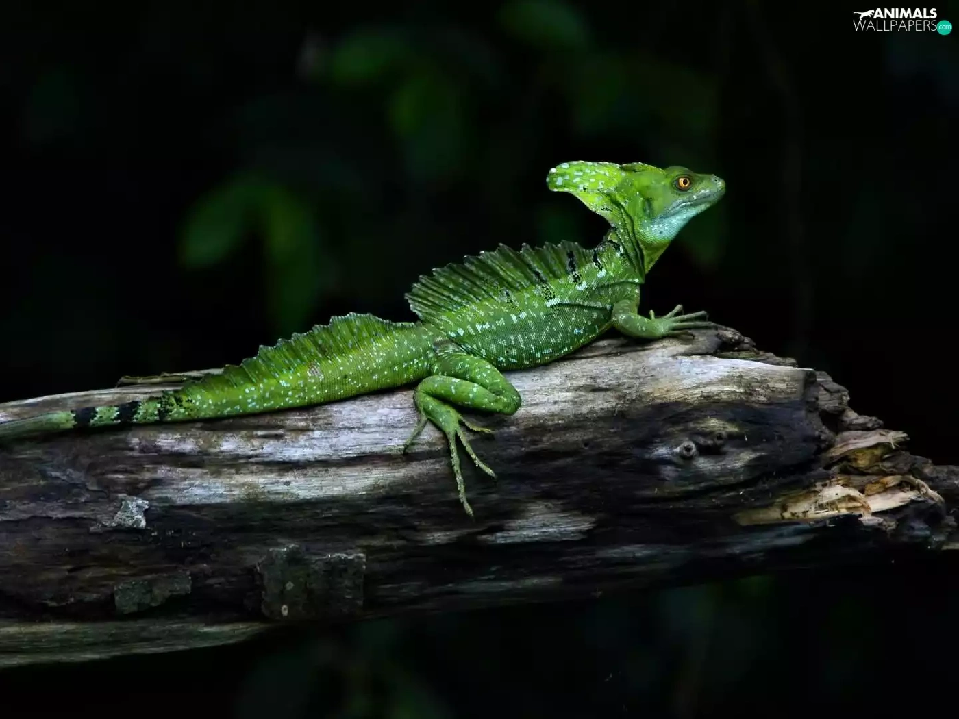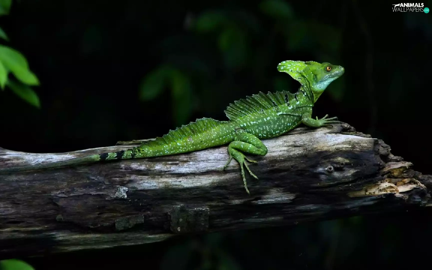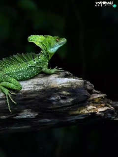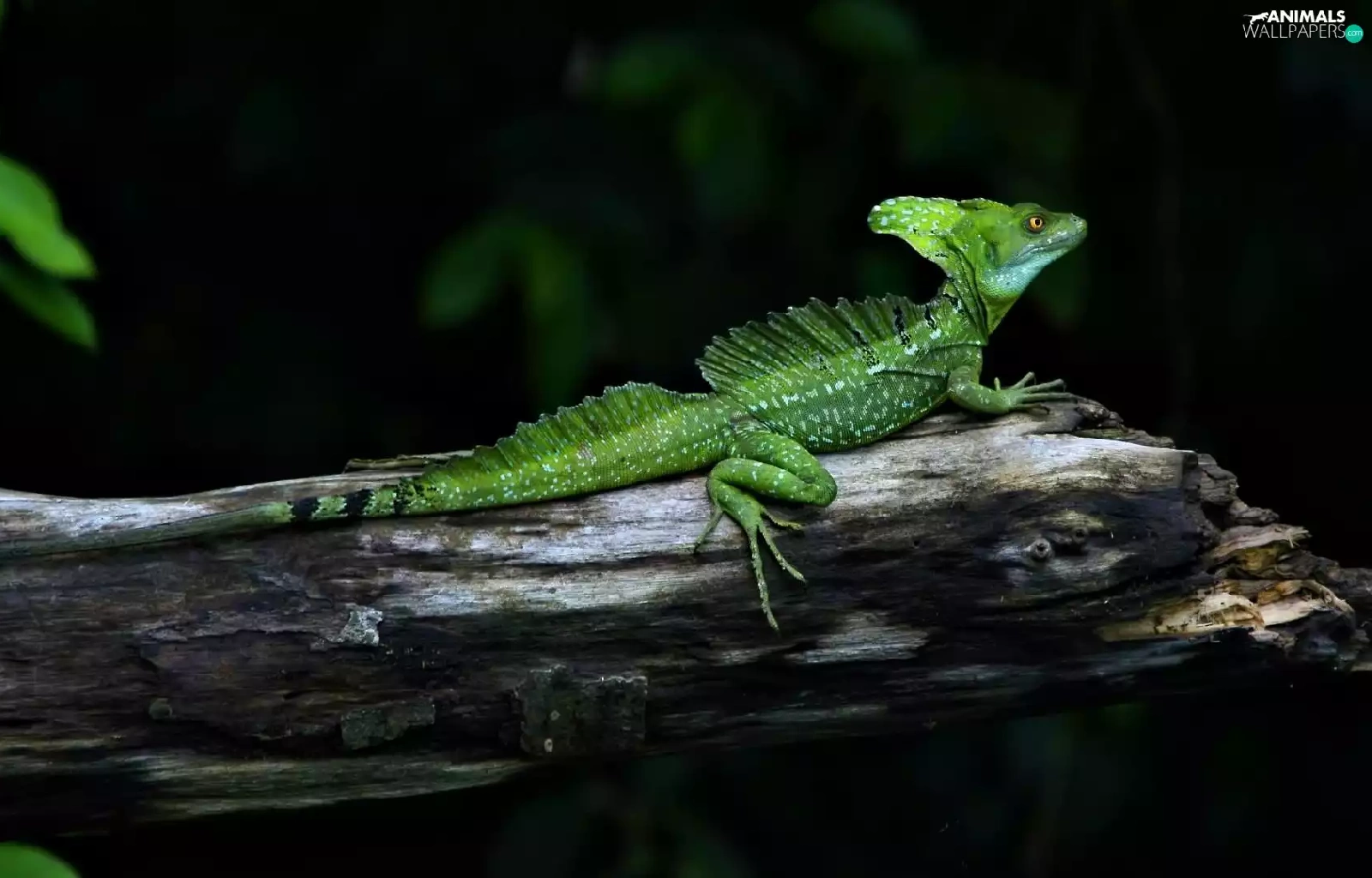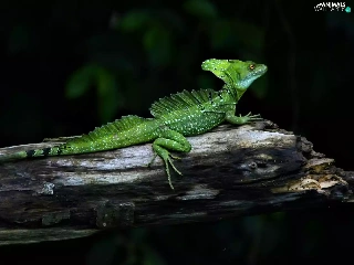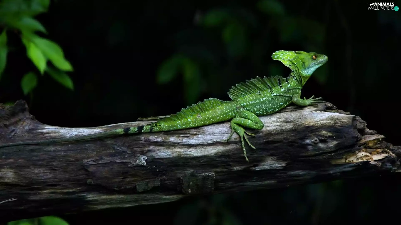 Lod on the beach, lizard, viewes, Plumed Basilisk, trees, Green