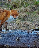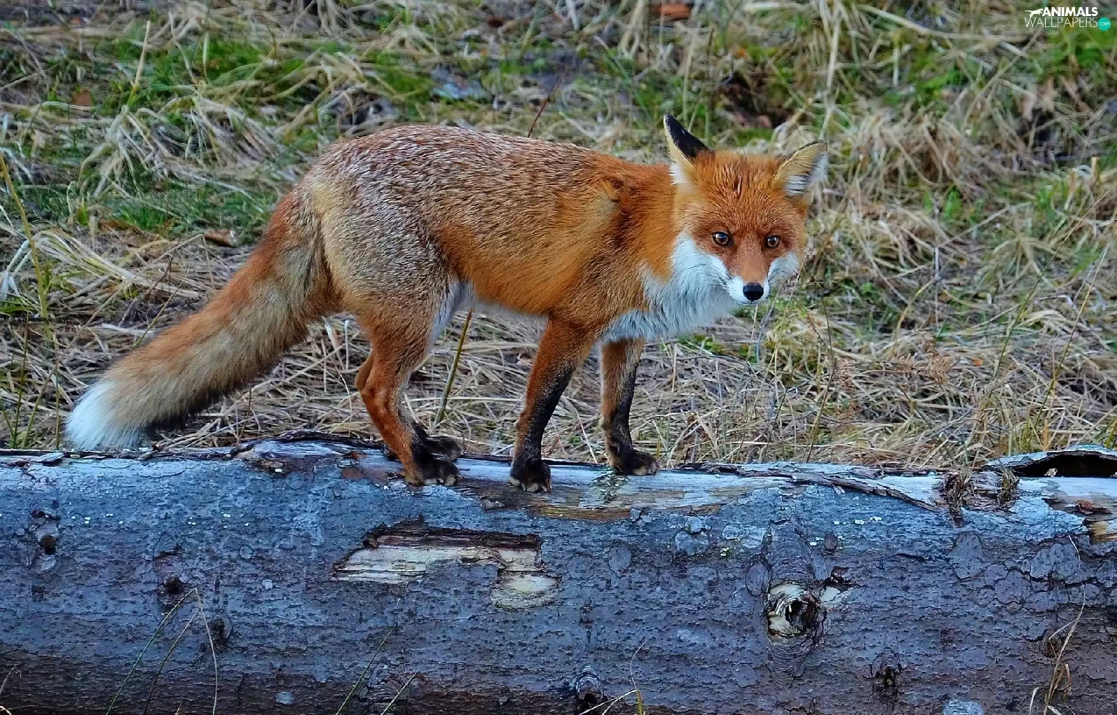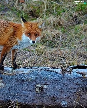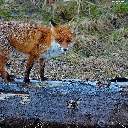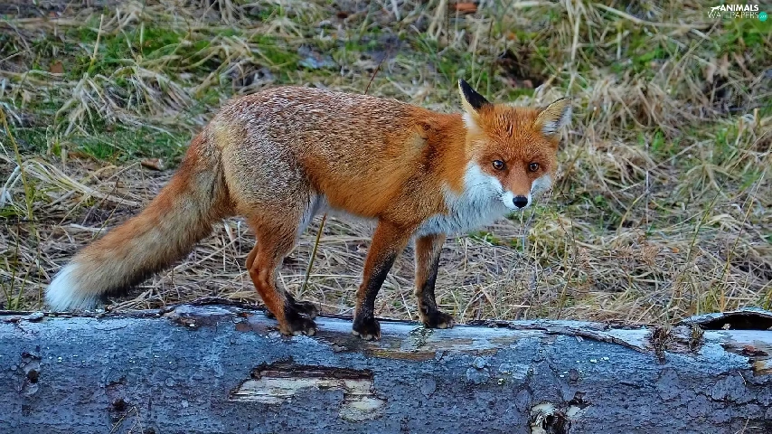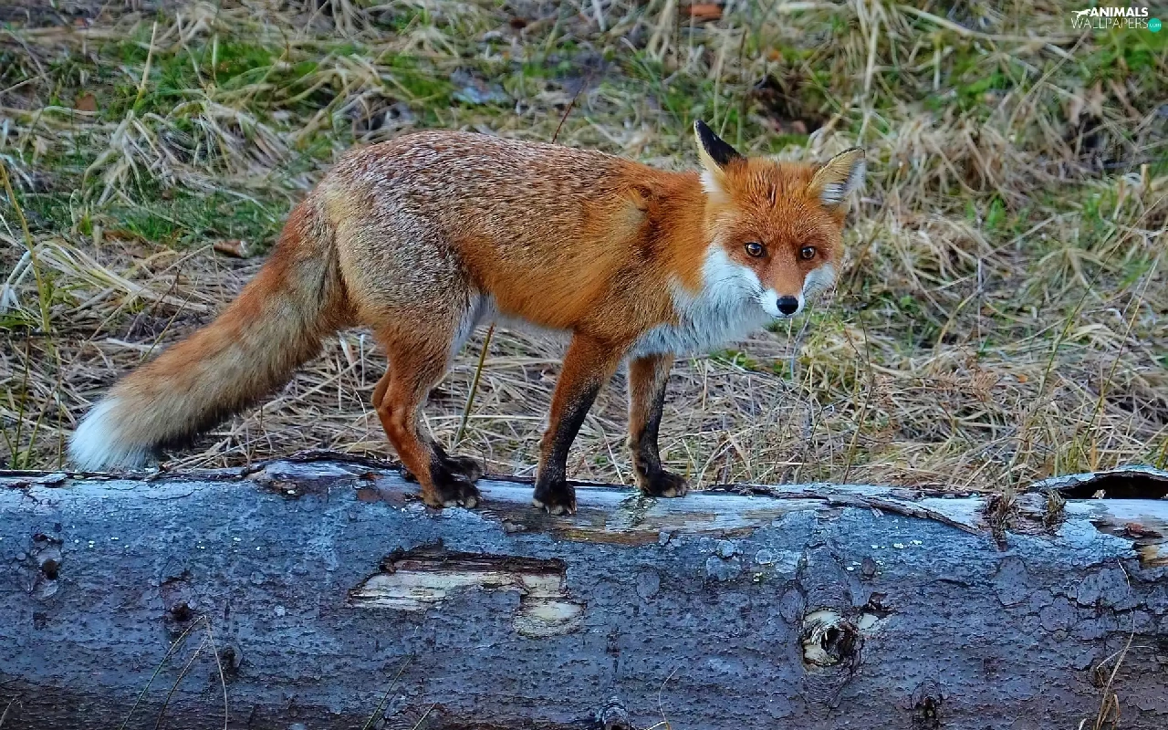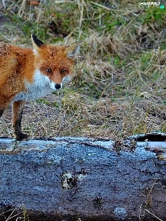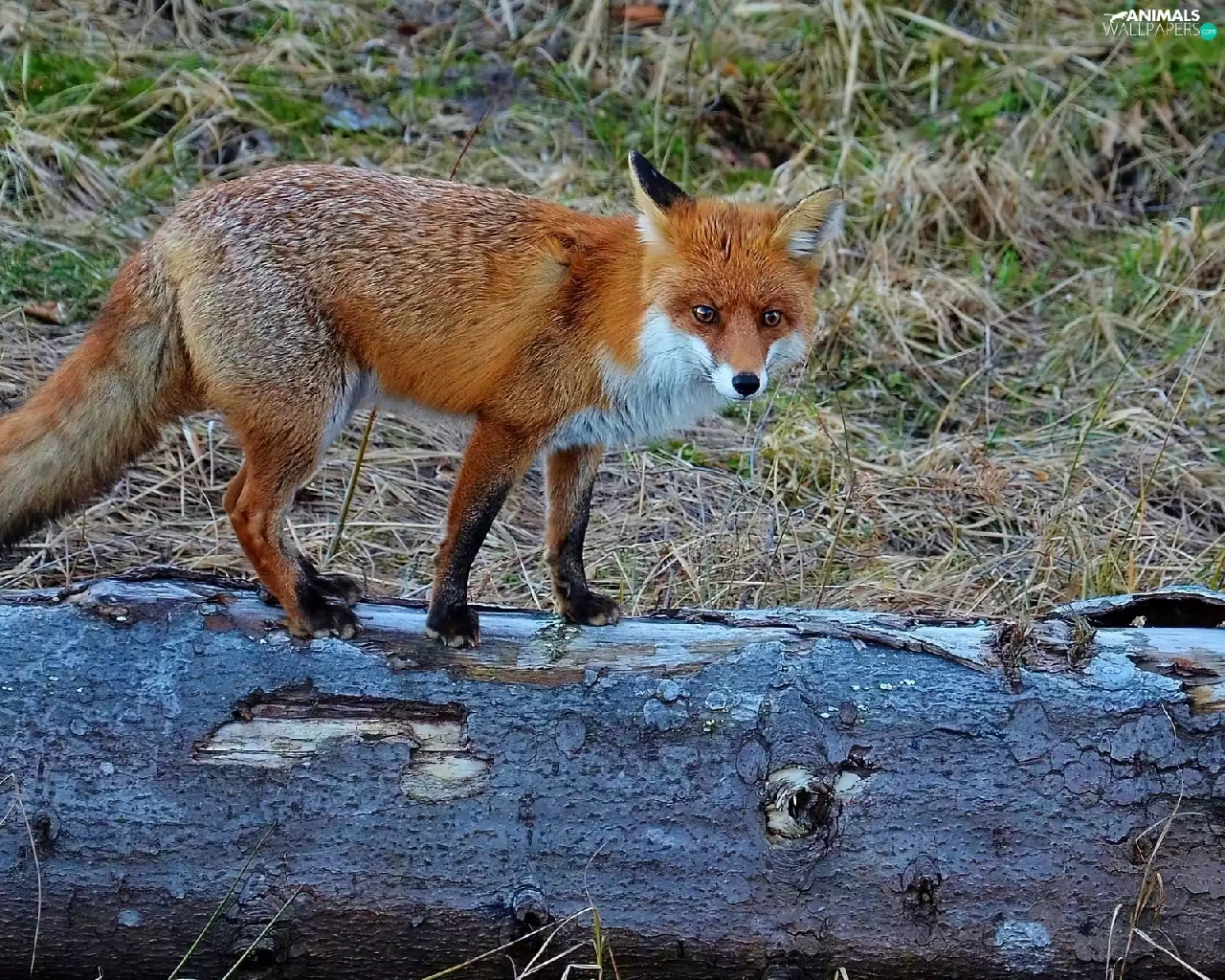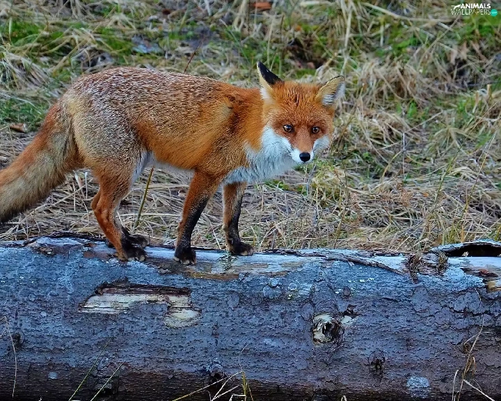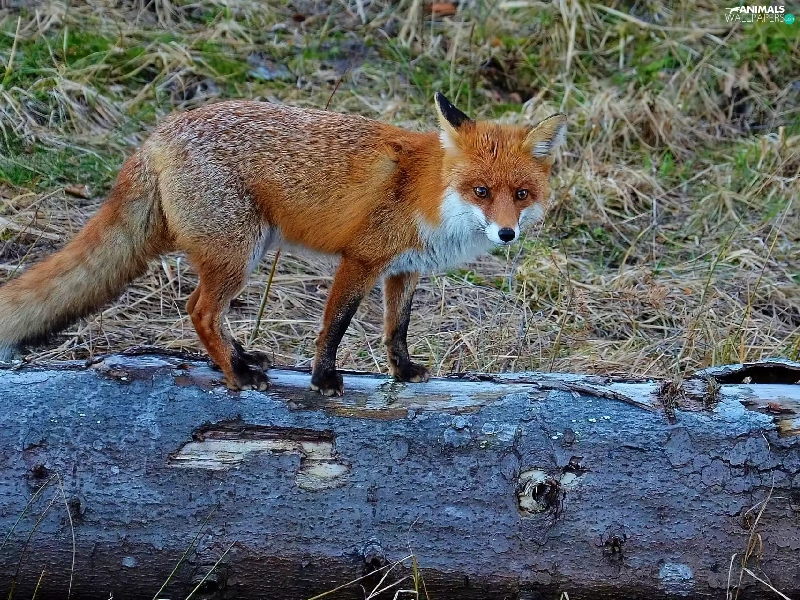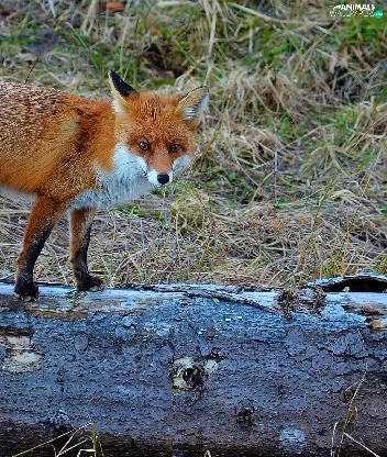 Fox, trees, viewes, log
