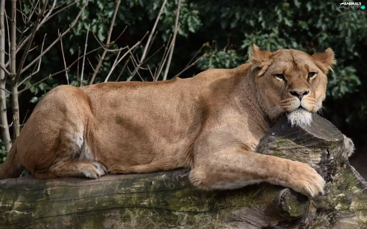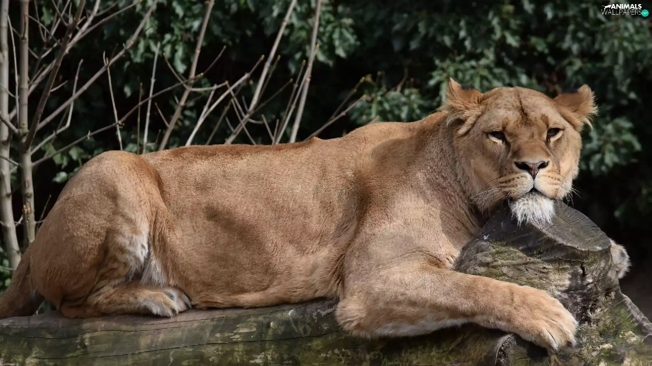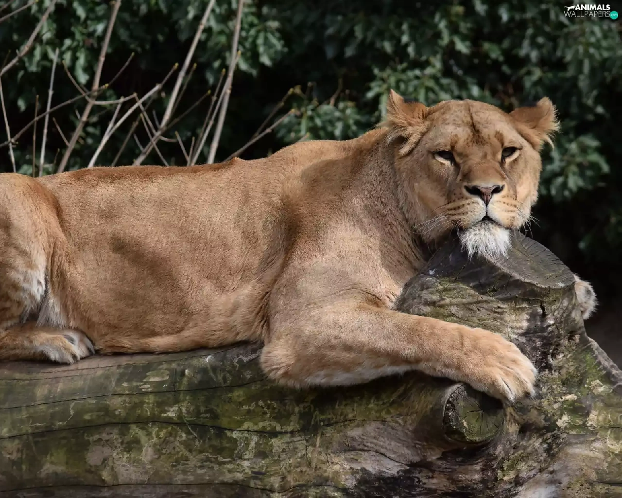 log, laying, Lioness