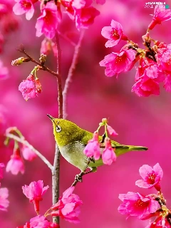 Two cars, Pink, Flowers, Birds on the log