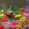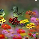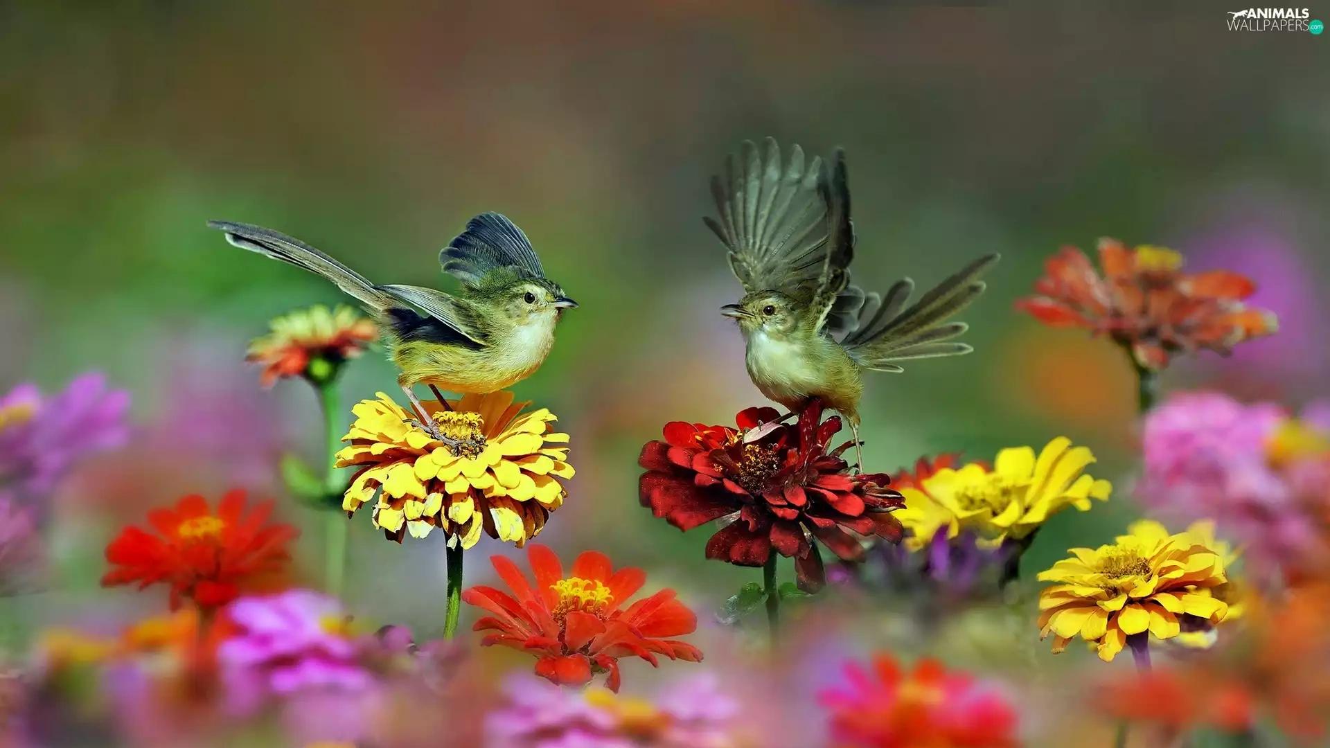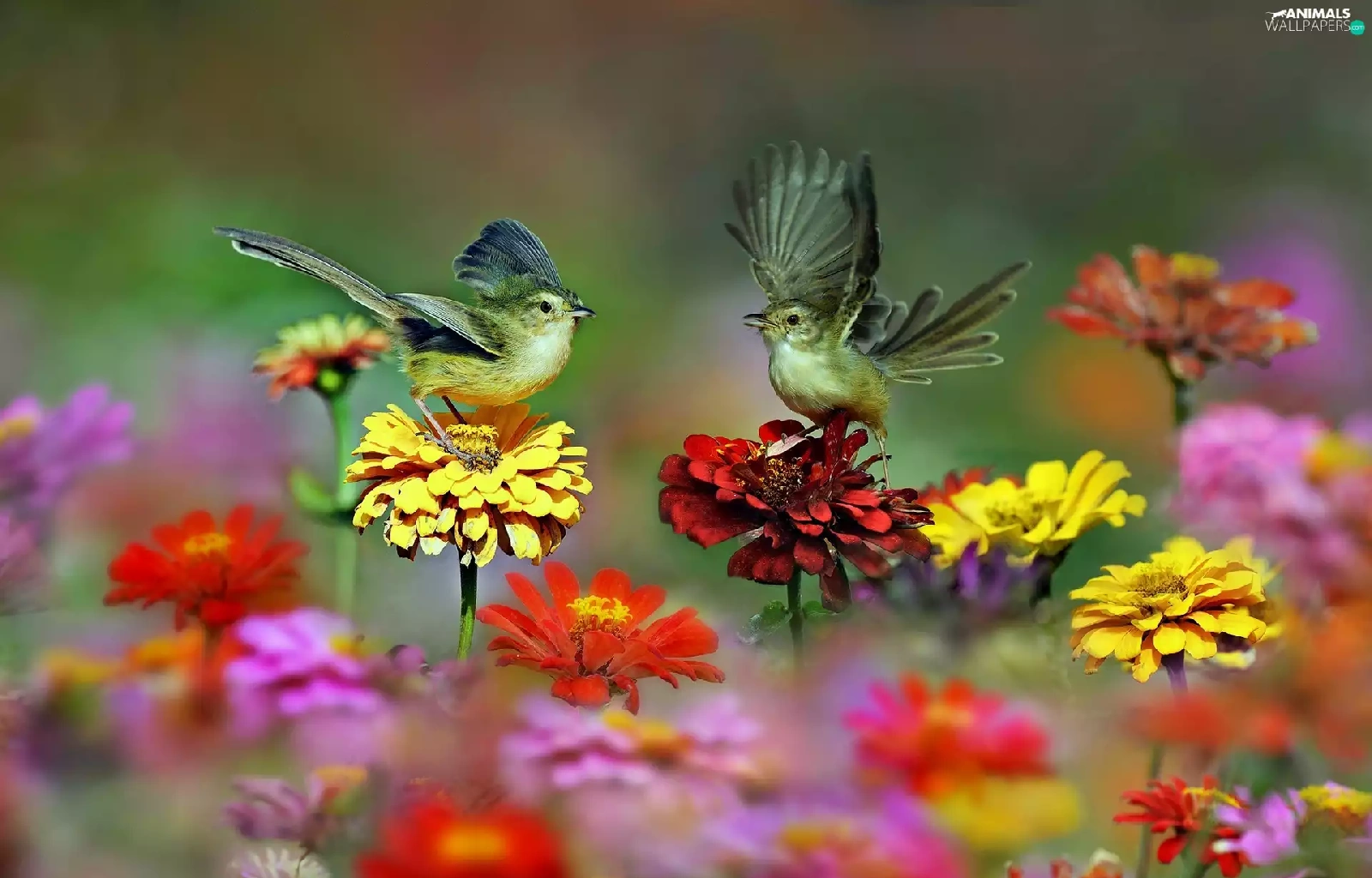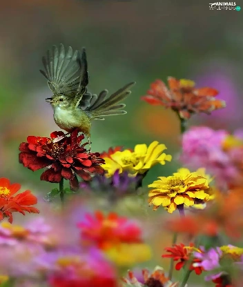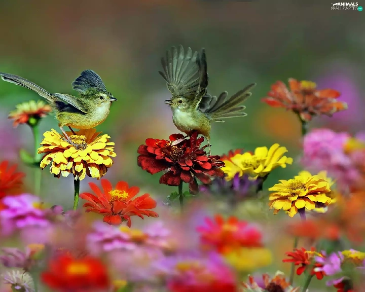 Birds on the log, Flowers, zinnia, wings