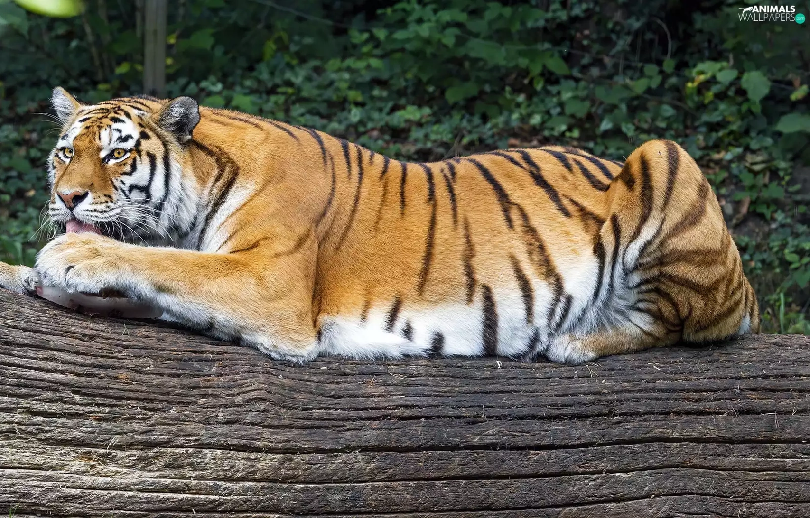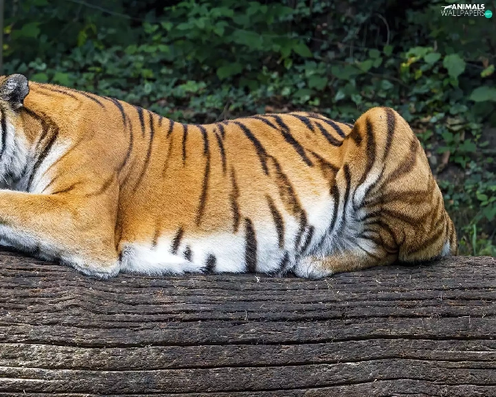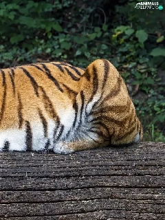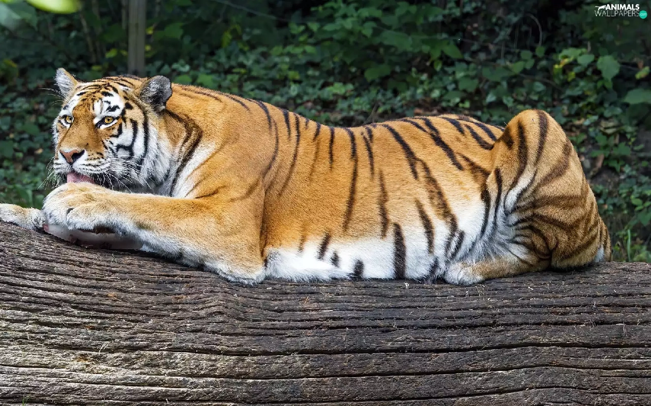 log, lying, tiger