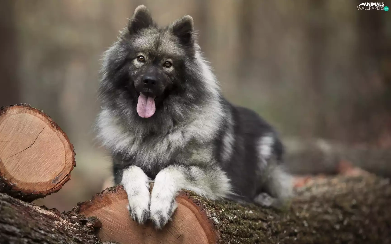 dog, Logs, Wood, Rurasier Spitz