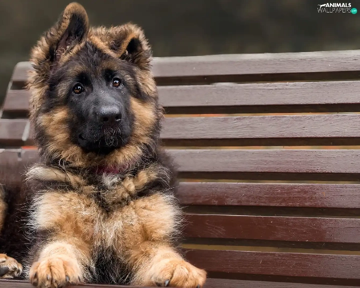 dog, Puppy, Bench, Long Haired German Shepherd