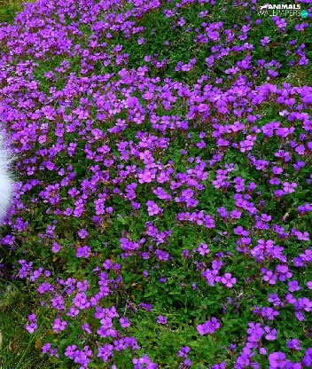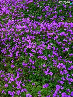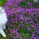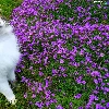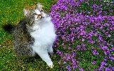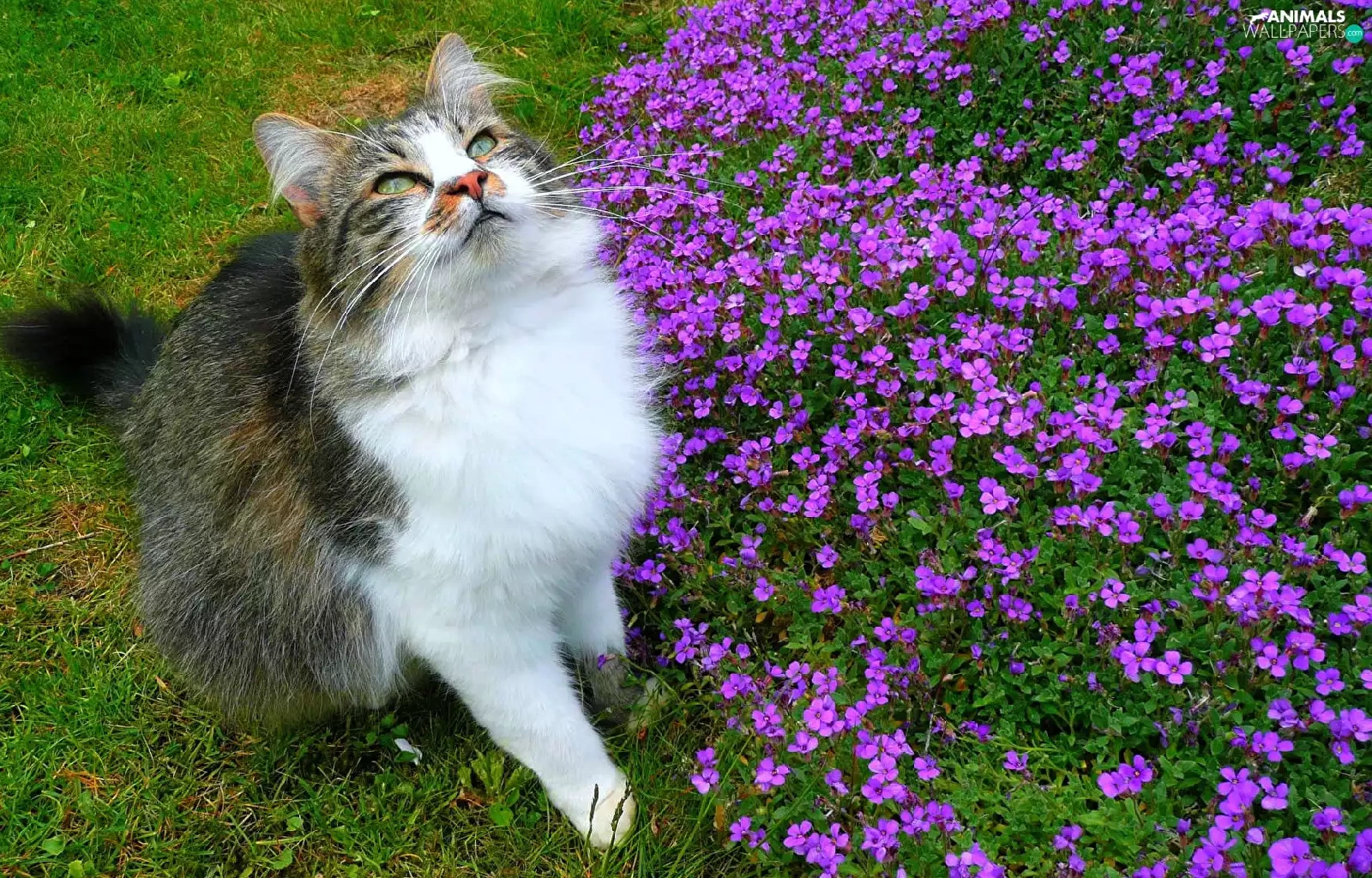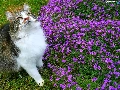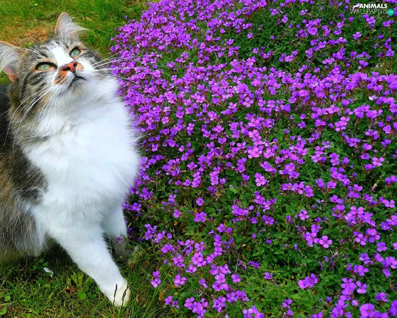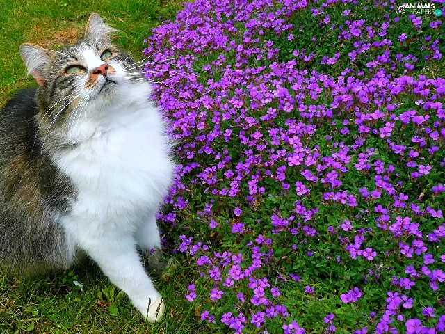 Flowers, grass, The look, purple, cat
