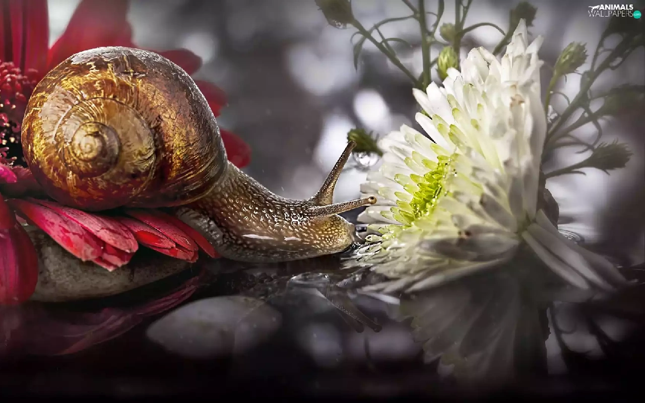 ligh, snail, flash, luminosity, sun, Flowers