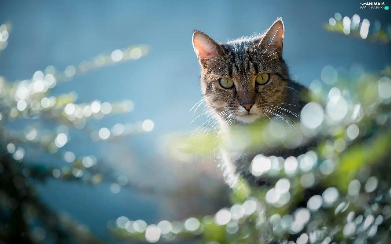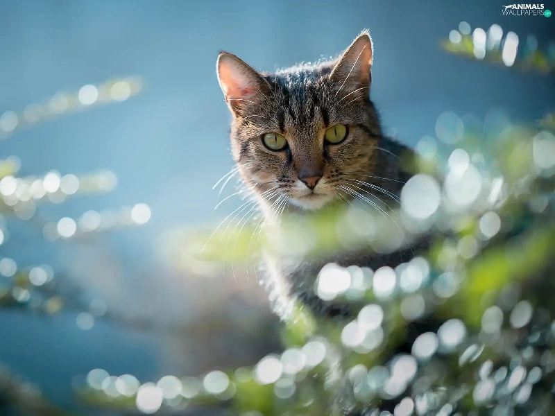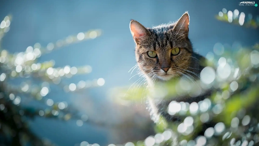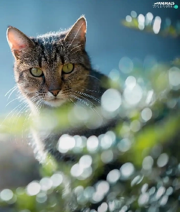 ligh, The look, flash, Twigs, cat, sun, luminosity