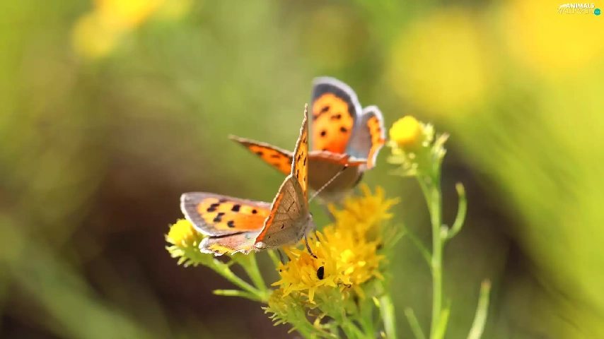 butterflies, insects, Flowers, Lycaena