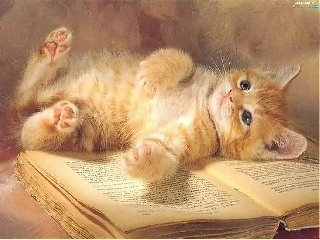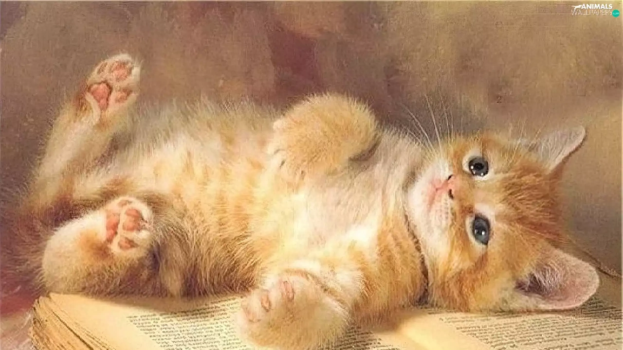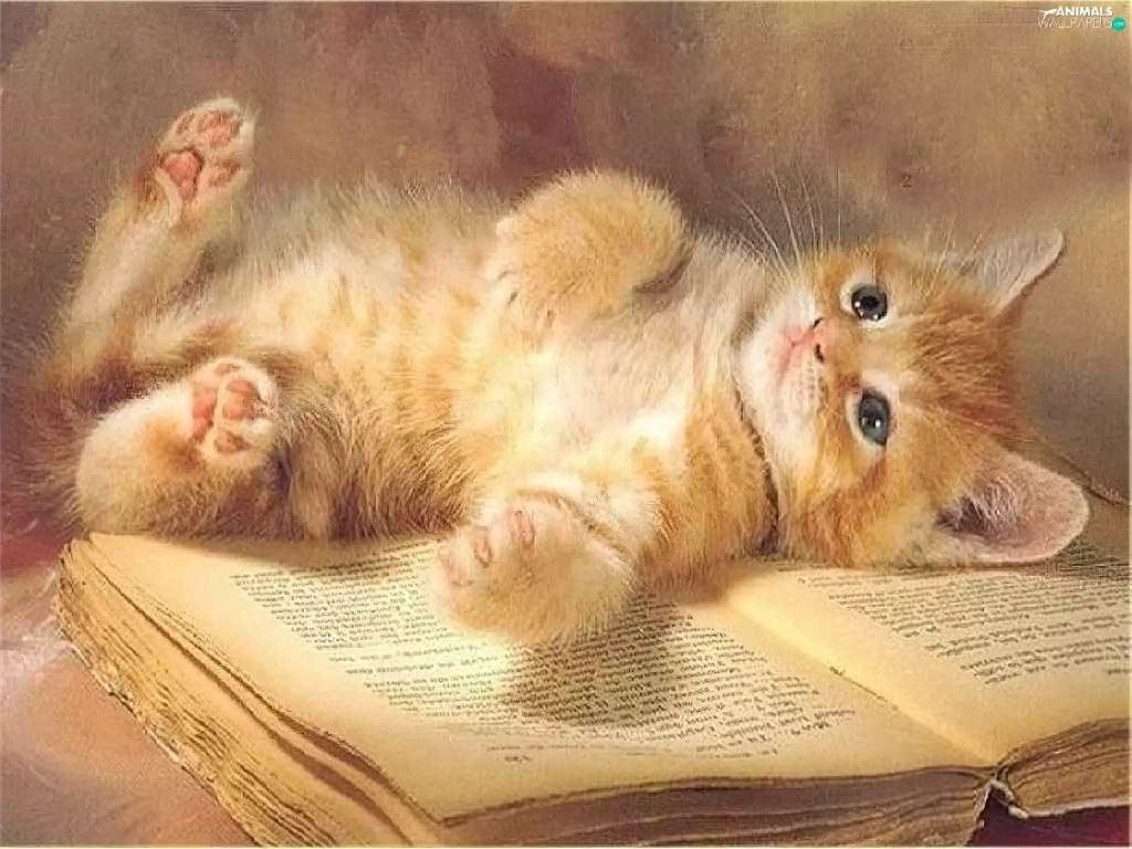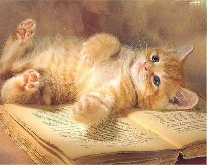 cat, an, book, lying