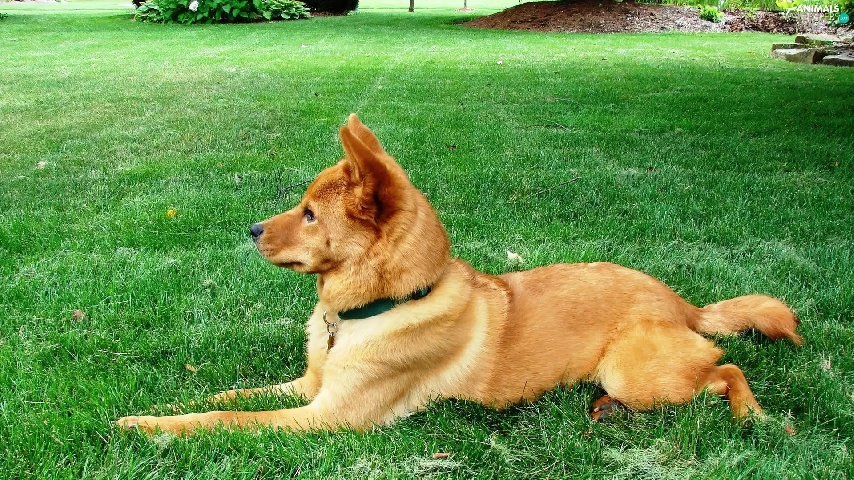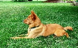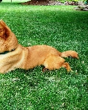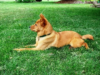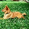 Finnish Spitz, ginger, lying