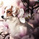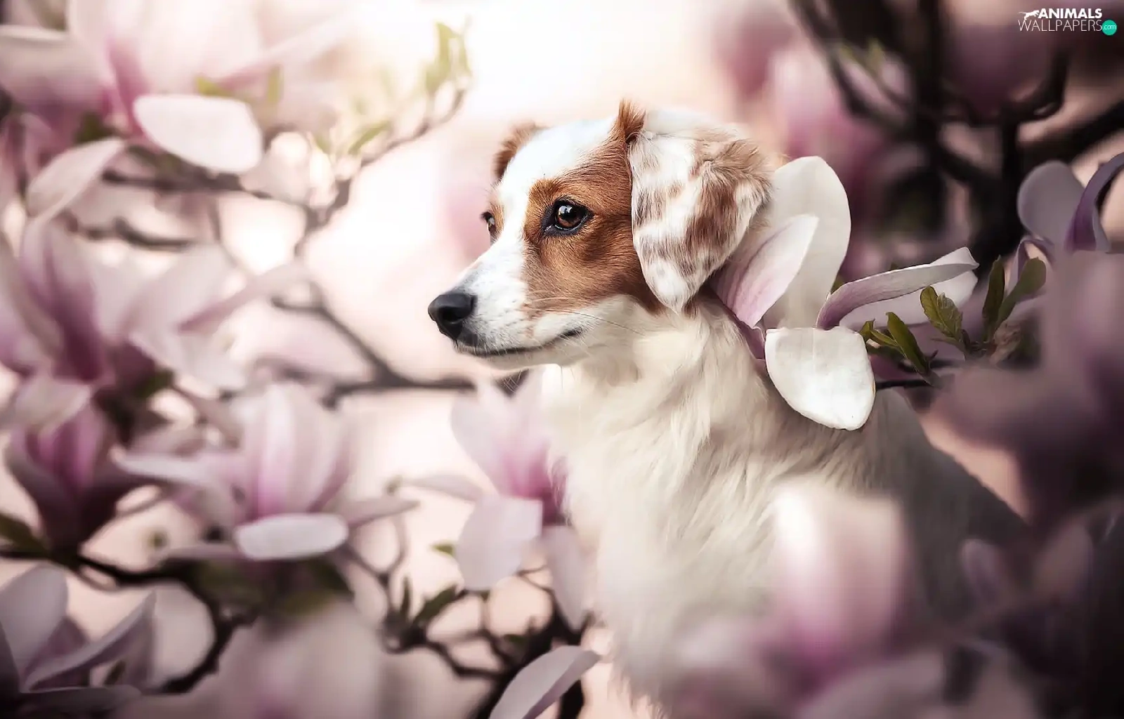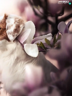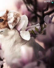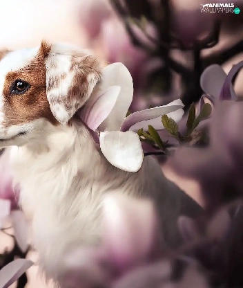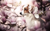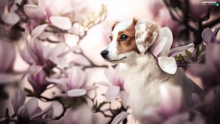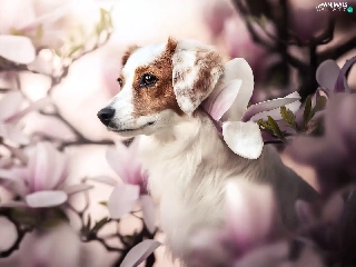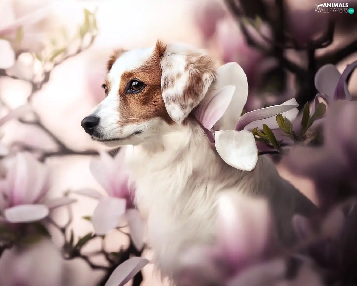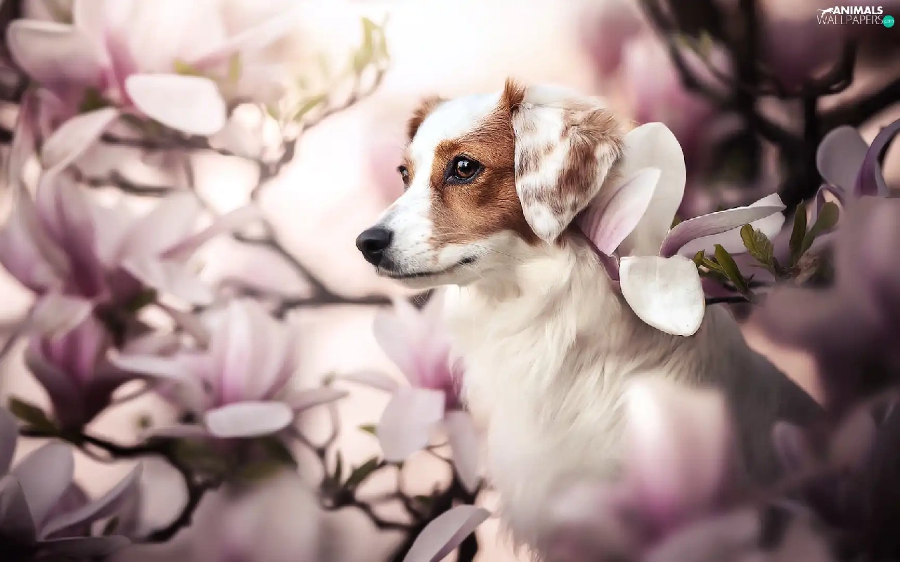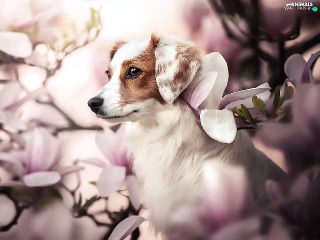 Magnolias, dog, Alpine