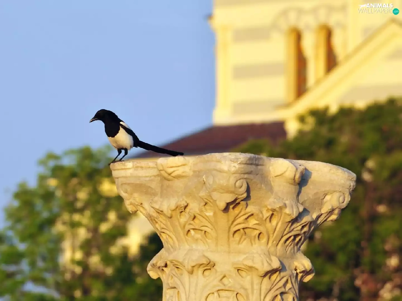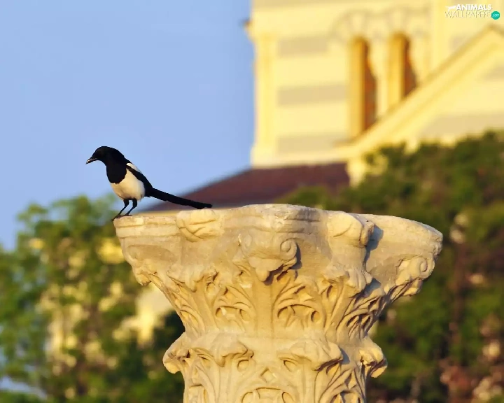 magpie, pedestal